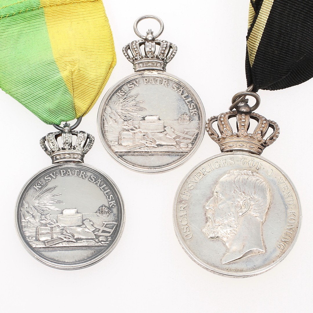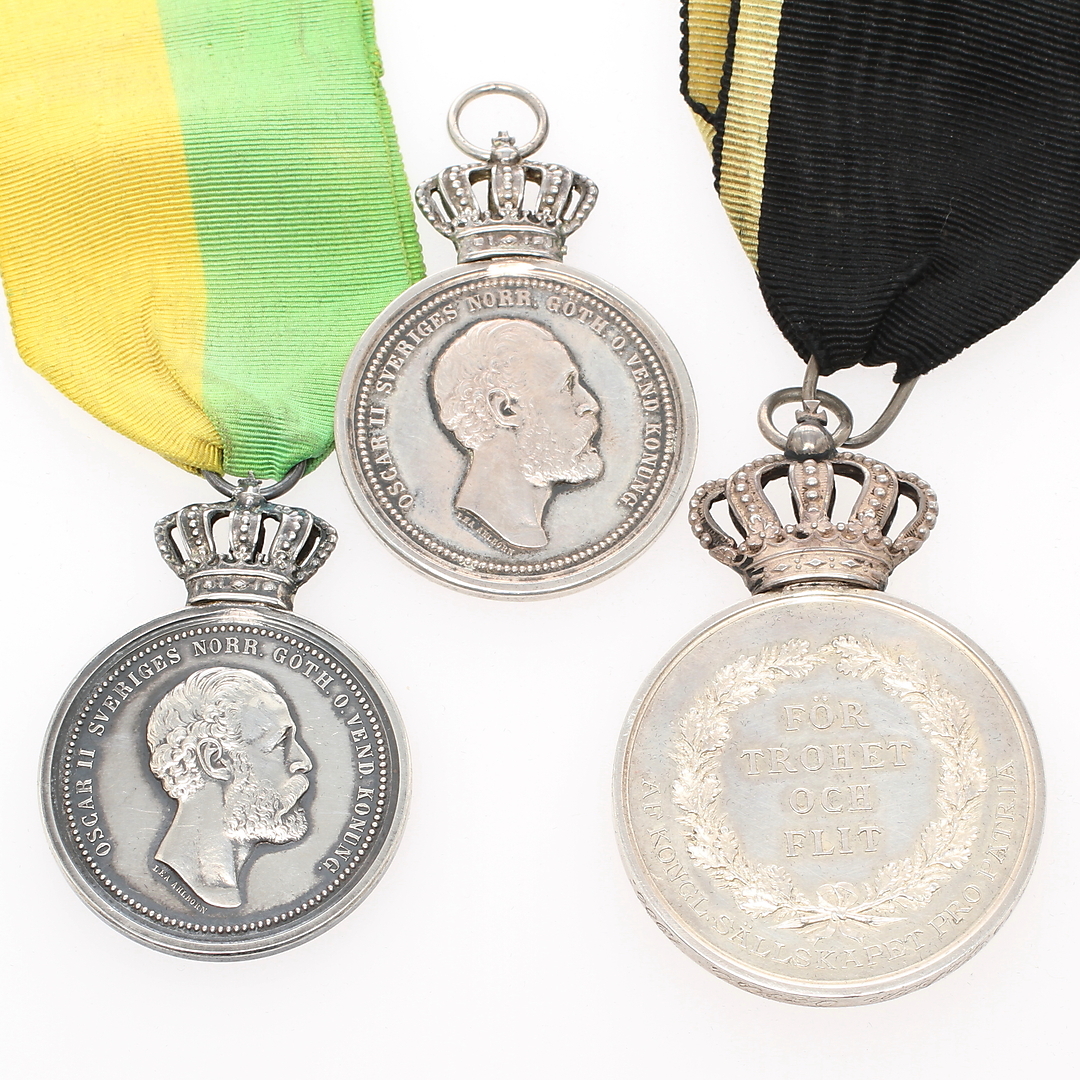262487. MEDALJER, 3 stk, sølv, Oscar II.