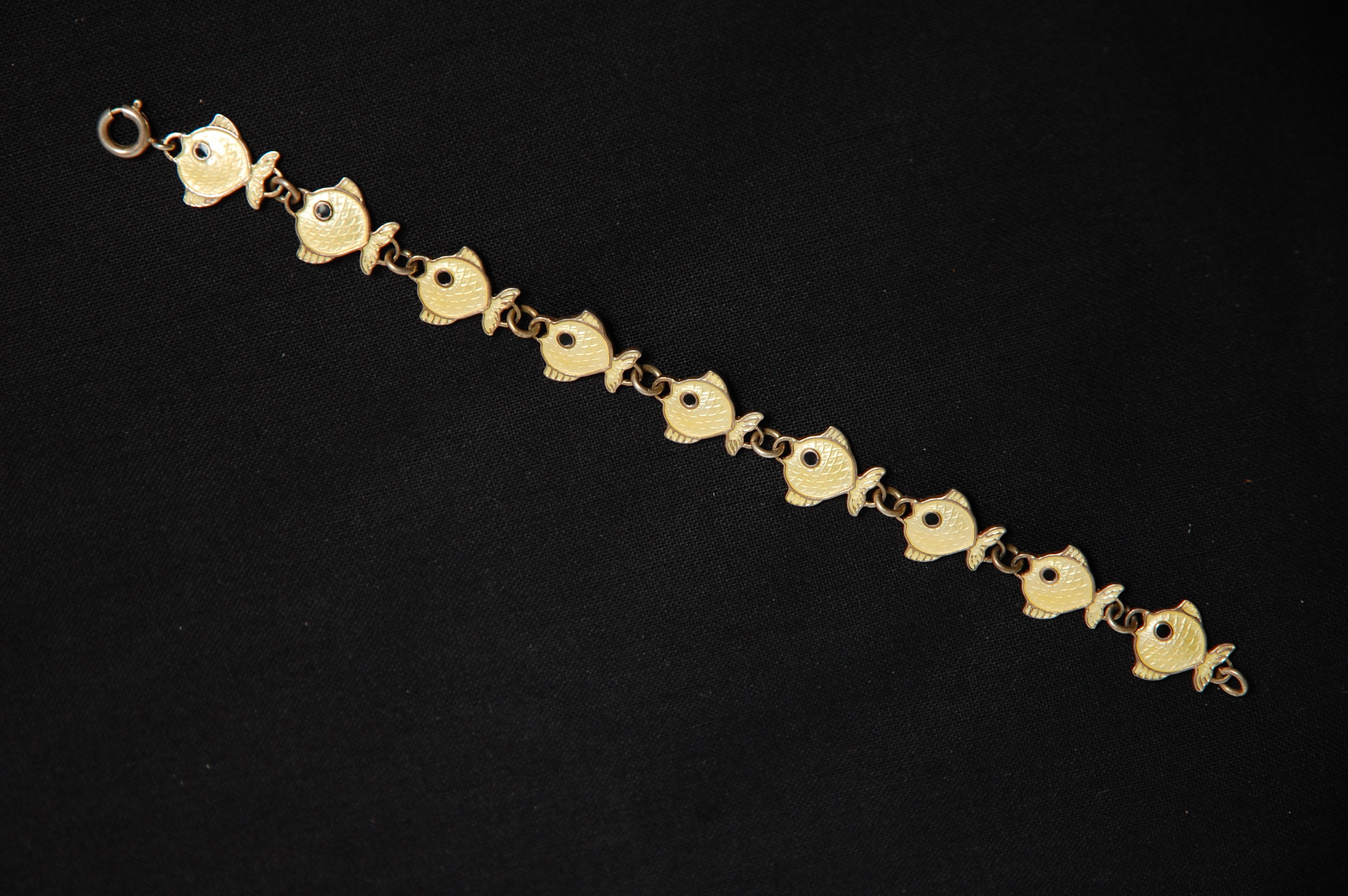 262849. ARMBÅND, emaljeret fisk, sølv.