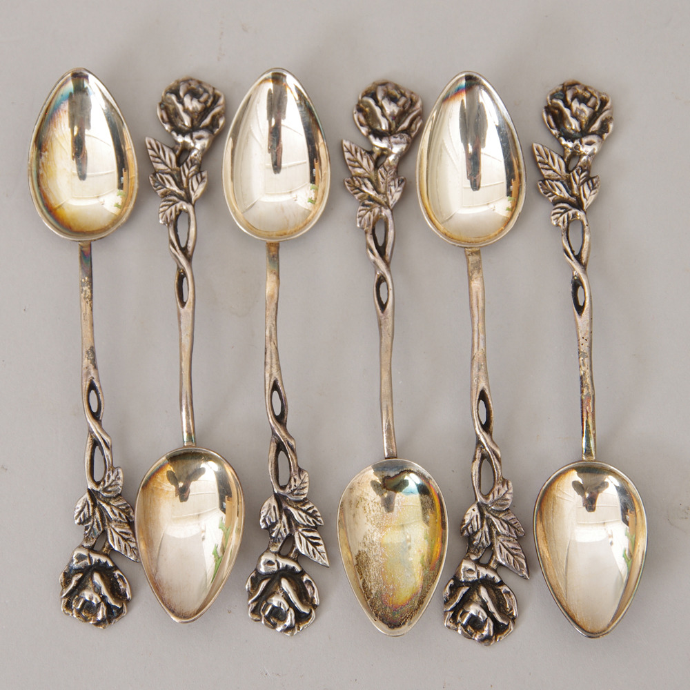 263161. Kaffeskeer, 6 stk., "Rosen", sølv.
