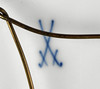 Porcelæn med underglasur blåt krydsede sværd mærke af Meissen porcelænsfabrik med stang omkring 1900, med presset u. Maler nr., Form Neuer Ausschnitt med bølgekant, udhulet flagplade i anledning af kroningen af Friedrich August III. den 15. oktober 1904 den sidste konge af Sachsen, underglasur blåt våbenmaleri, flankeret af *AR*, laurbærgrene og kroningsdato, kant med laurbærgrene og løv, Ø ca. 25 cm.