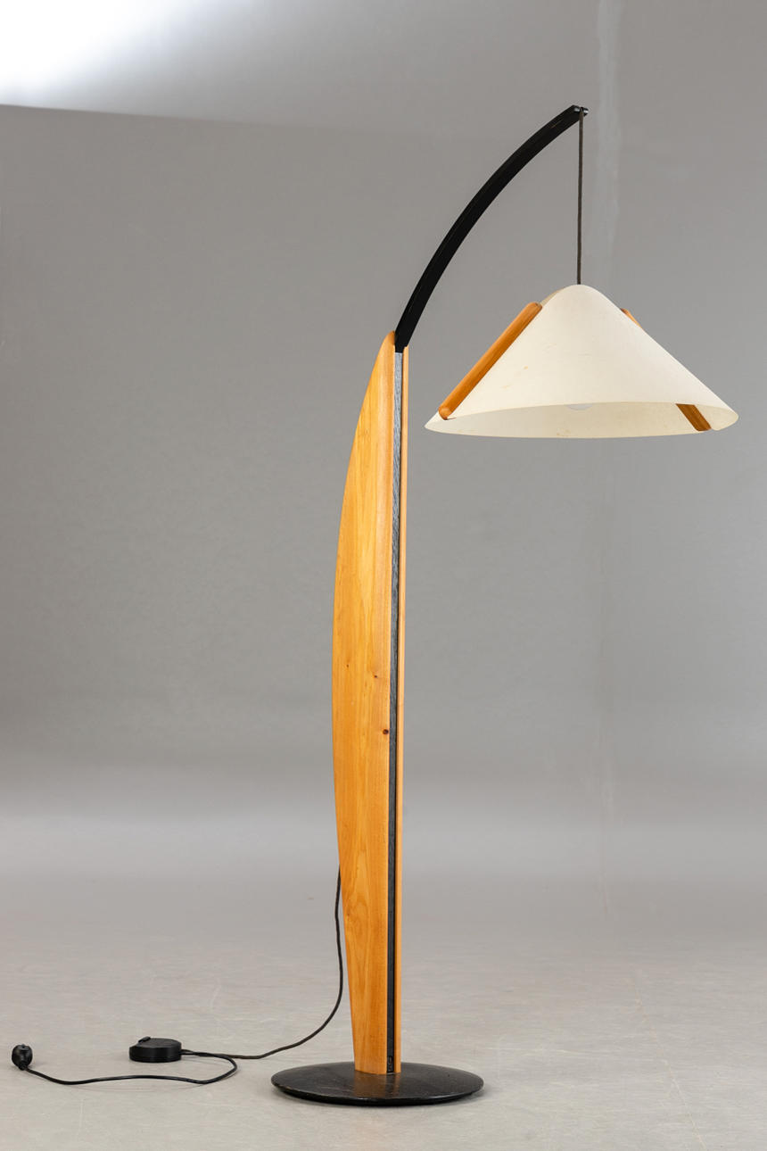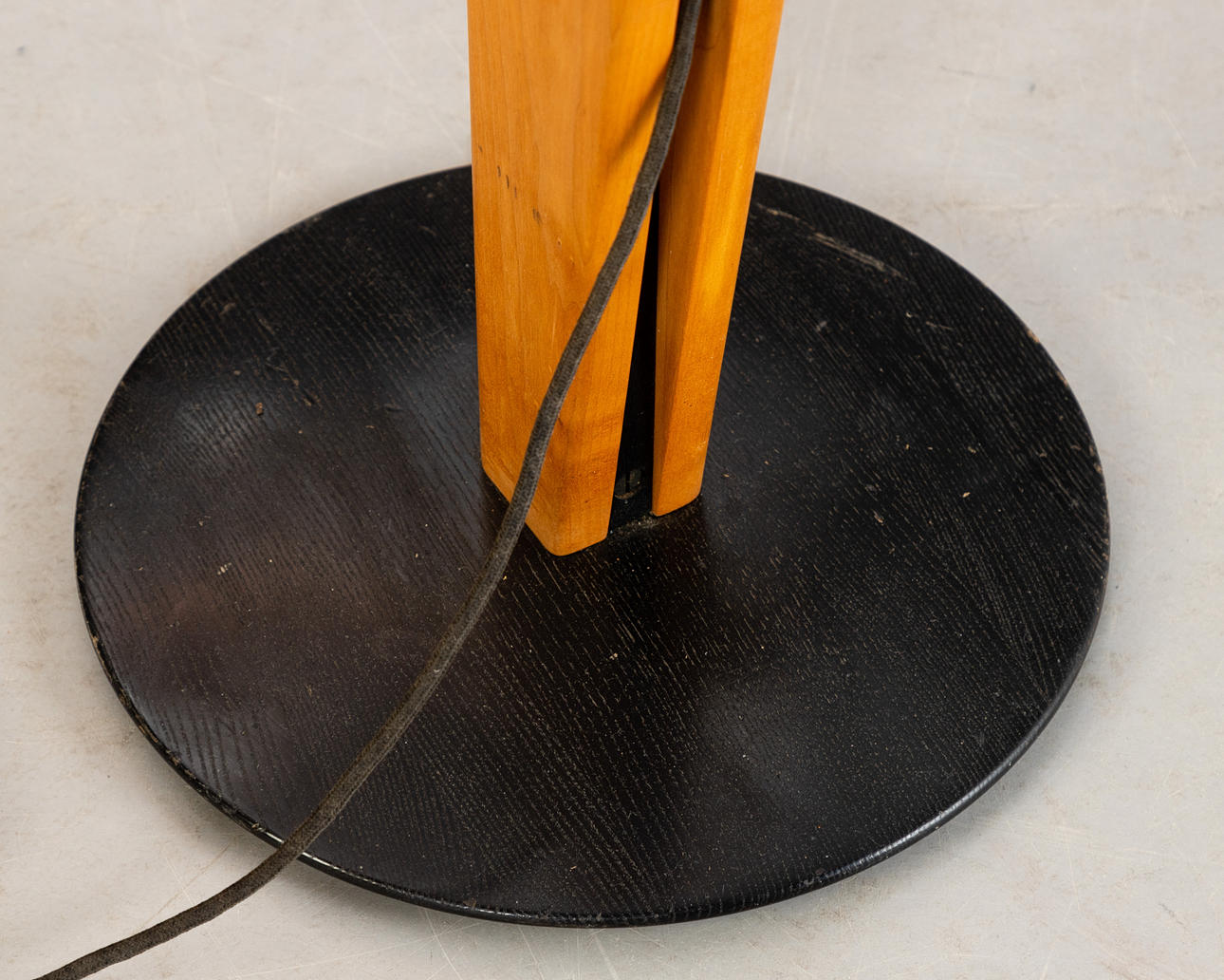 Domus. gulv lampe. Træ og Lunapol. Lampestander af træ, delvist sortmalet. Lampeskærm i hvid gennemsigtig Lunapol. 1 brænder, E27 fatning.