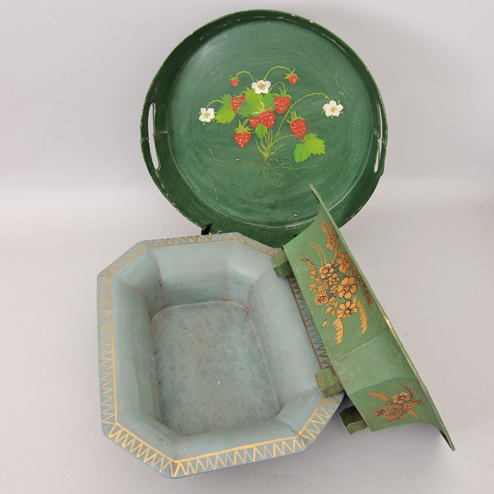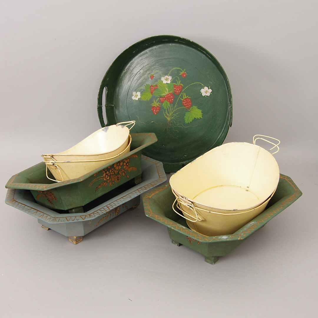 263611. BAKKE OG BLOMSTERÆSKER, malet metalplade.