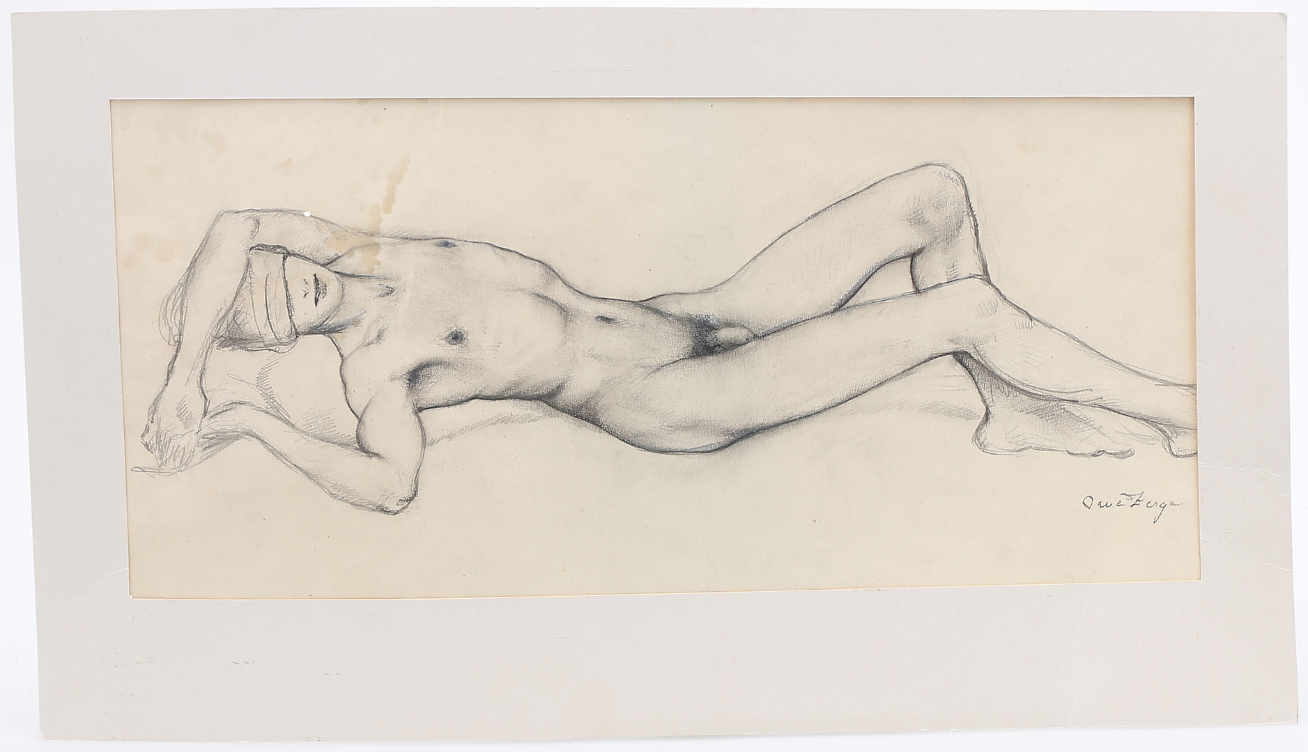 264056. OWE ZERGE. Nøgenstudie. Blyant, signeret.