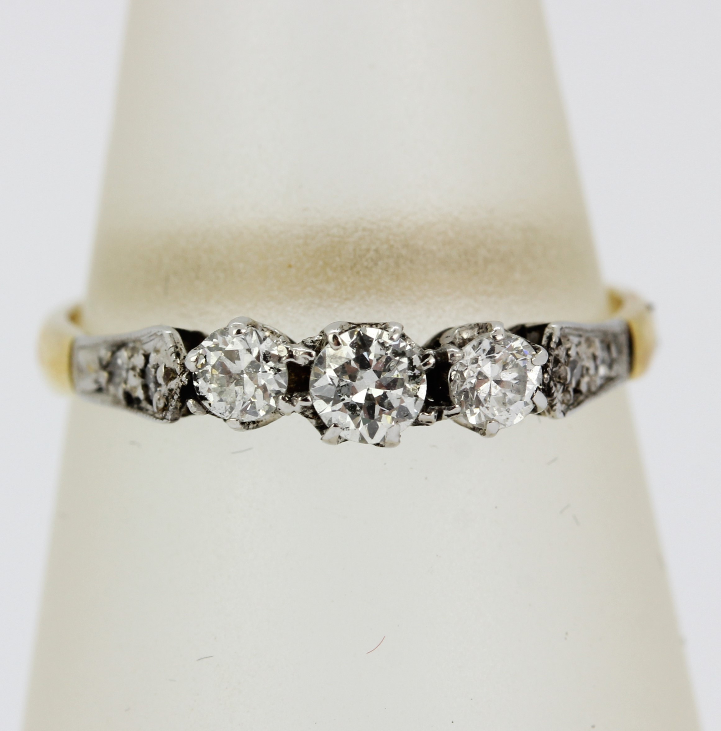 2649007. 18CT GULD TRE DIAMANT STENRING.