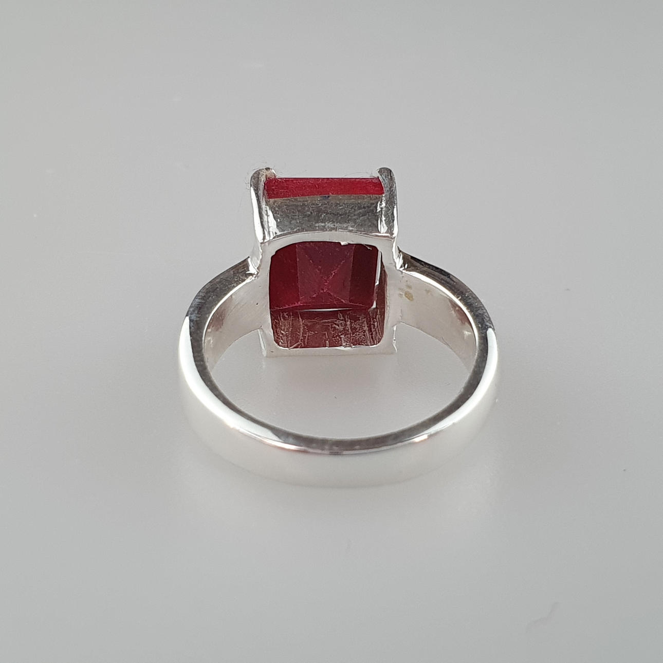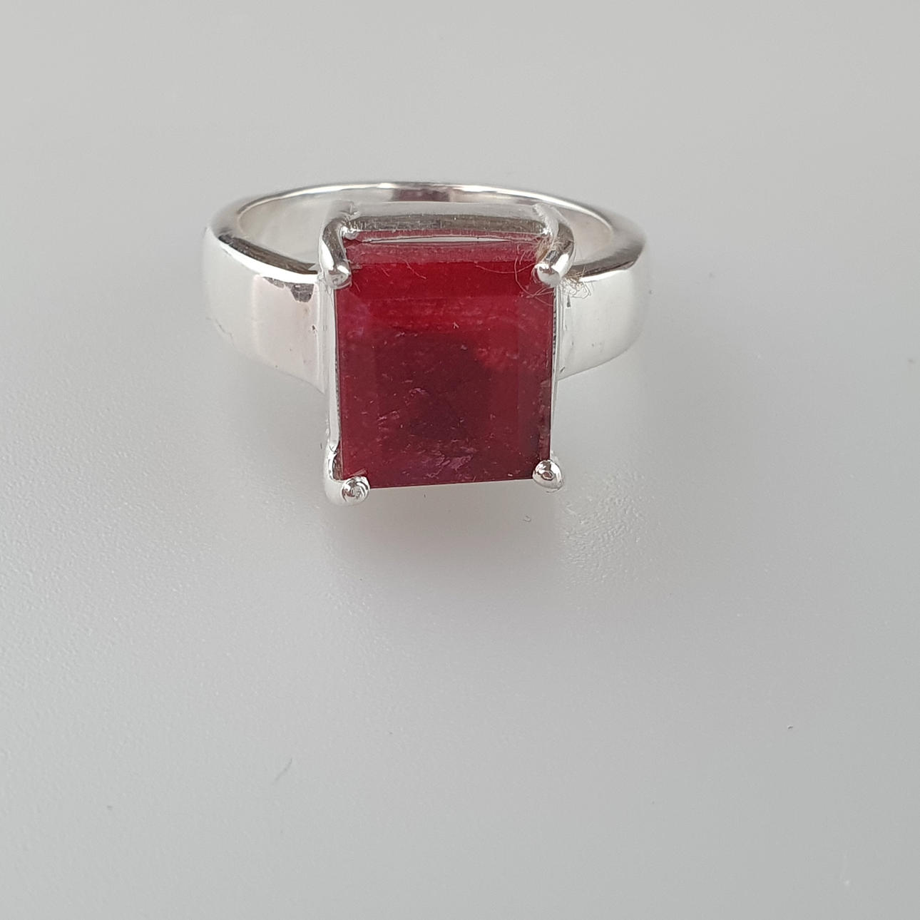 925 sølv rubin ædelstensring med en 4 karat sten, vægt ca. 8,7 g, ringstørrelse ca. 18,2 mm, ringhoved ca. 10,8 x 9,3 mm.