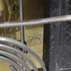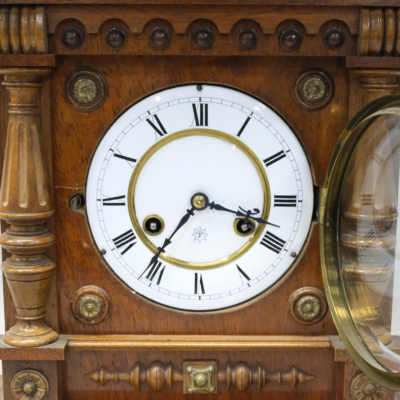 Bordur i træ med hvid urskive. Nyrenæssancestil. Højde: ca 55 cm.