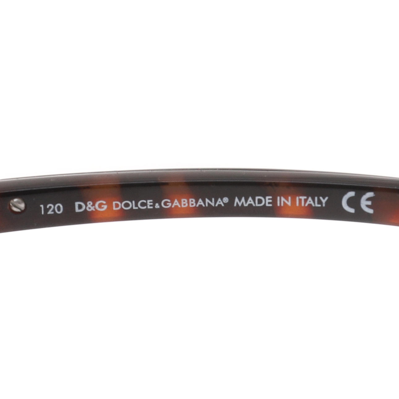 D&G 2195 146 6617 120, de brune linser med imiteret skildpaddeskalsramme, armene indlagt med et metalbånd til toppen, 14 cm linse til linse, 11,5 cm armlængde.