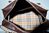 Indvendig med siderum. Længde 50 cm, højde uden håndtag 30 cm, bundbredde 30 cm.