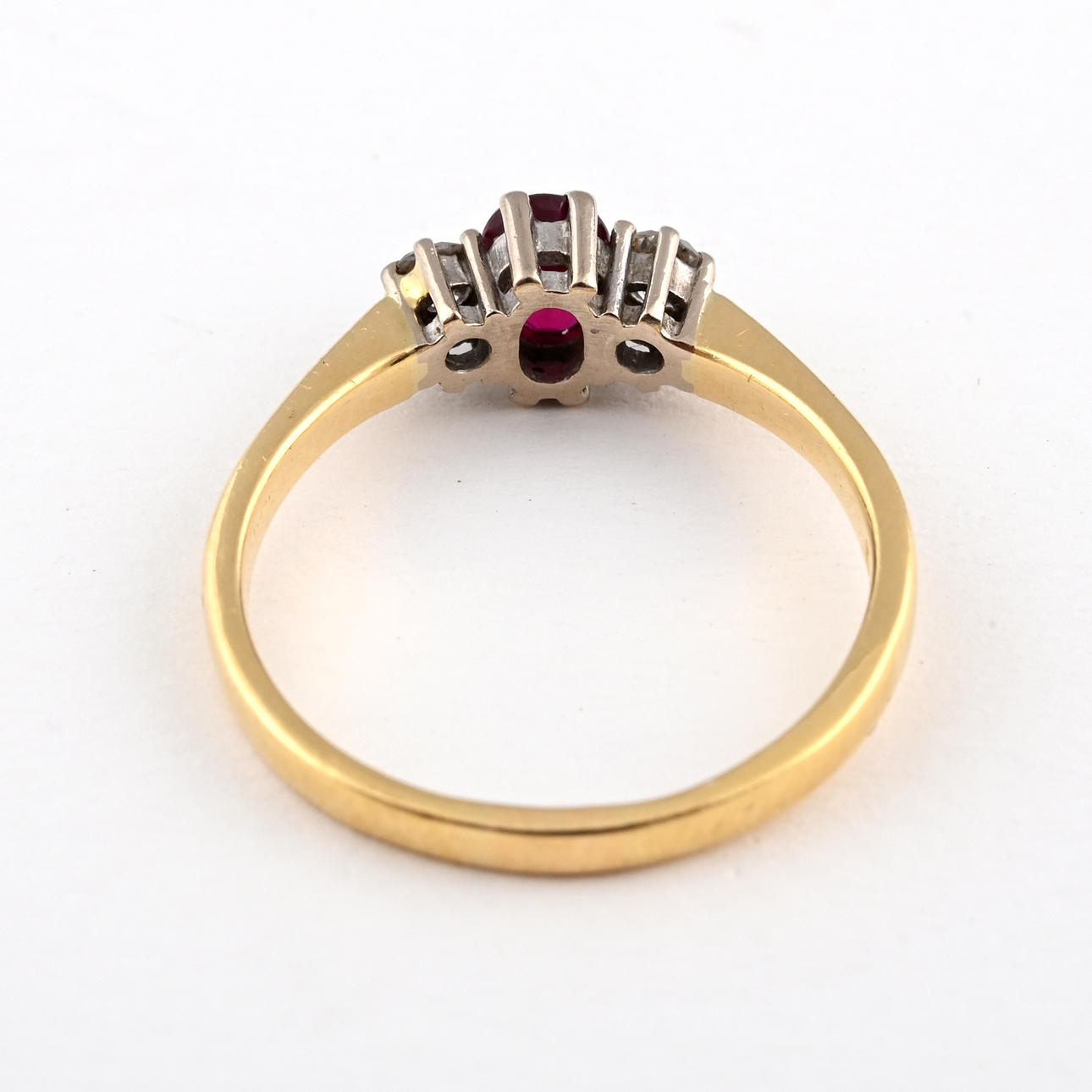 EN RUBIN OG DIAMANT TRE STEN RING.