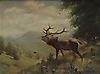 Tysk maler fra det 20. århundrede Century, olie på lærred, u. re. skilt. W. Domschel, afbildning af en brølende hjort. Mål: 80 x 60 cm. indrammet.