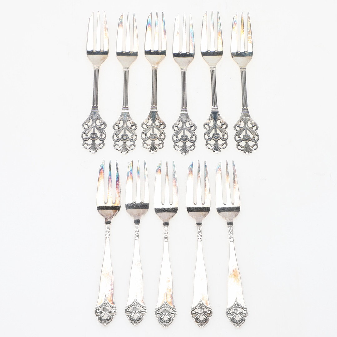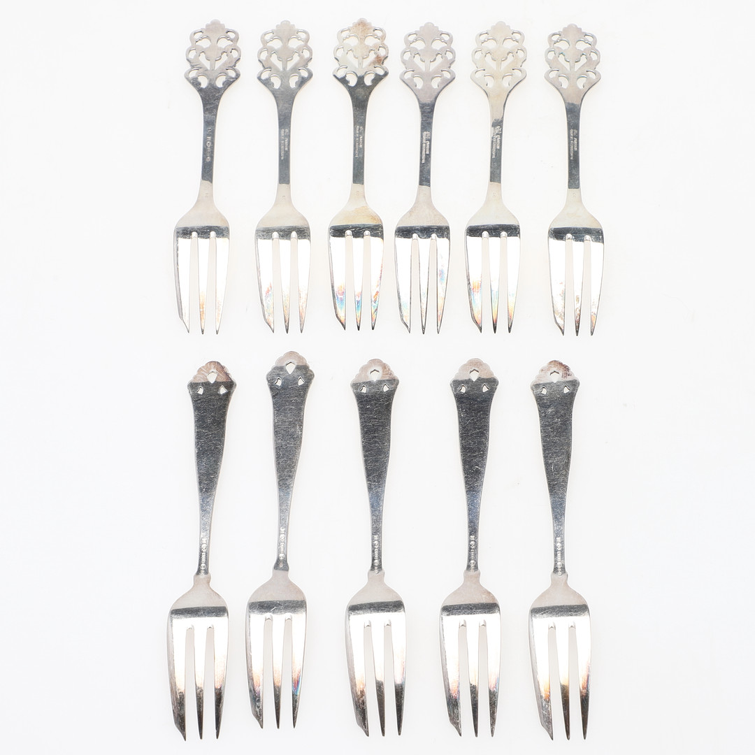 2669962. KAGEGAFLER, 6+5 stk, sølv, Norge.