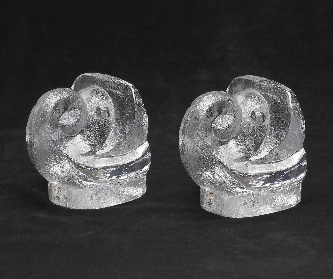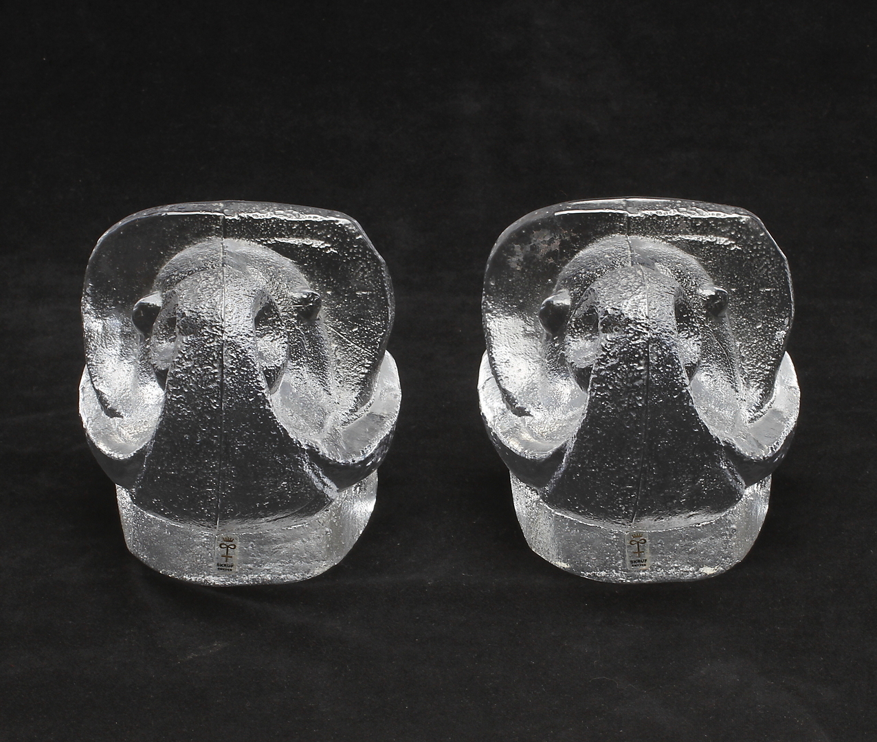 267144. BOKSTÖD, et par, glas, Lars Hellsten, Skruf, signeret.