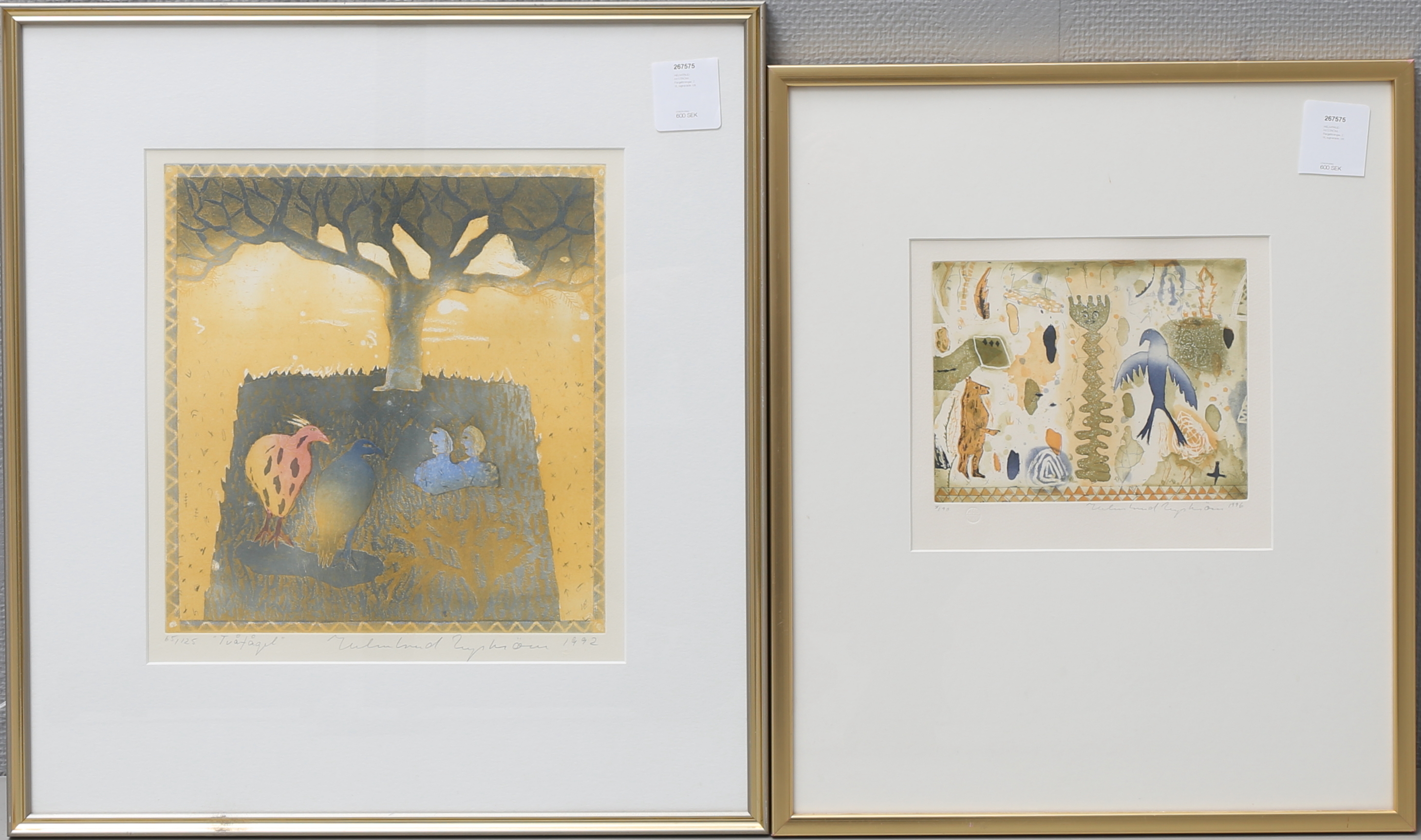 267575. HELMTRUD NYSTRÖM. Farvetegninger, 2 stk, signeret.