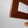 Tre-personers sofa i teaktræ. Professionelt ompolstrede hynder.