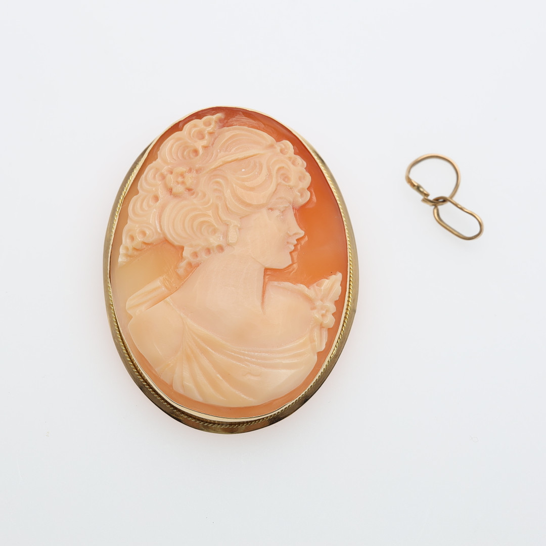 2681790. BROCHE/HÆNG, cameo, 18K guld.