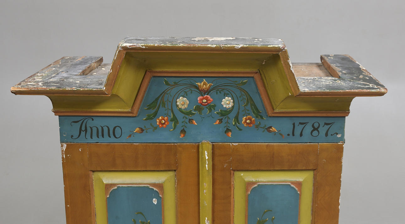 Malet. Længde ca. 83, bredde 33, højde 113 cm.
