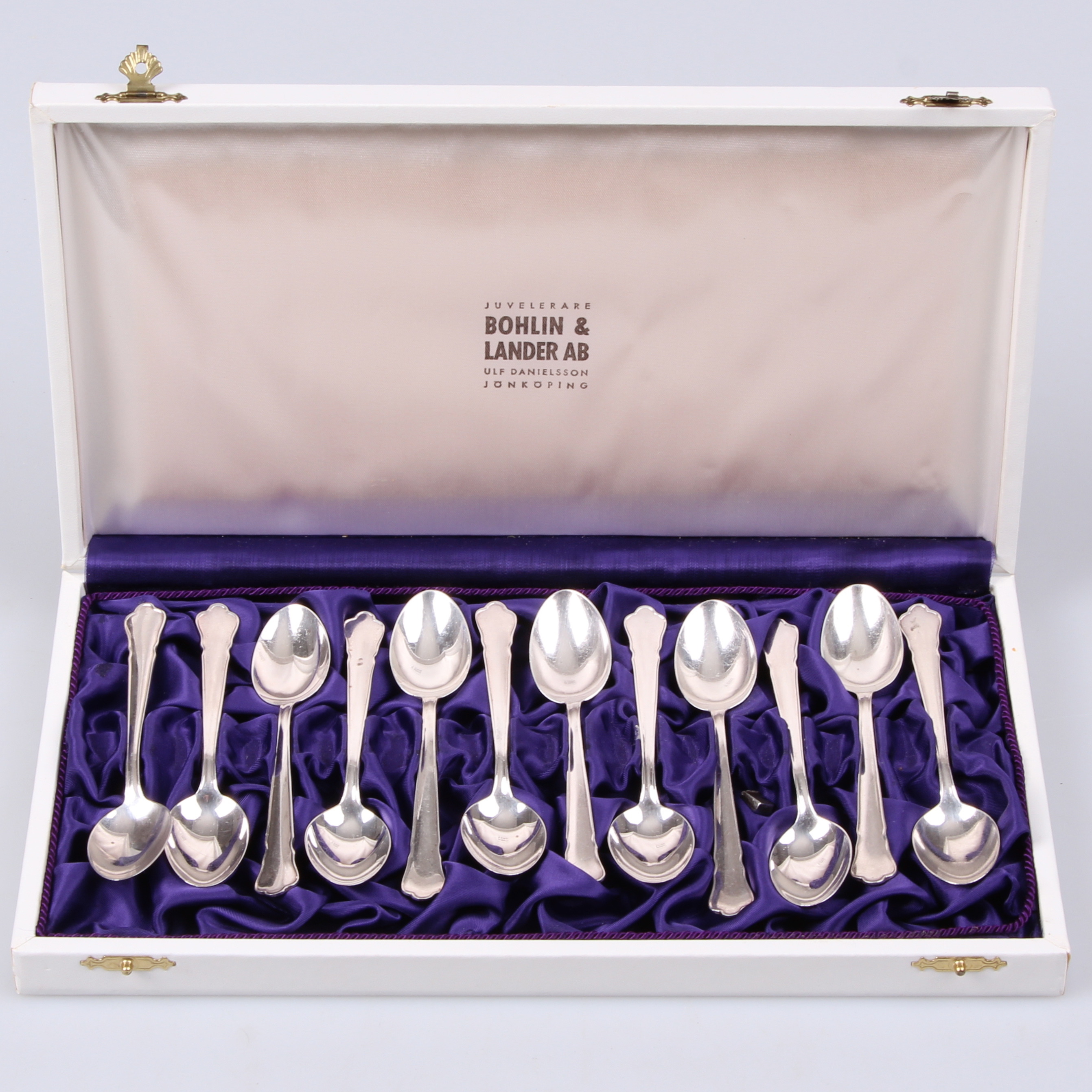 268321. TESKEDAR, 12 stk. Sølv, "Chippendale", GAB.