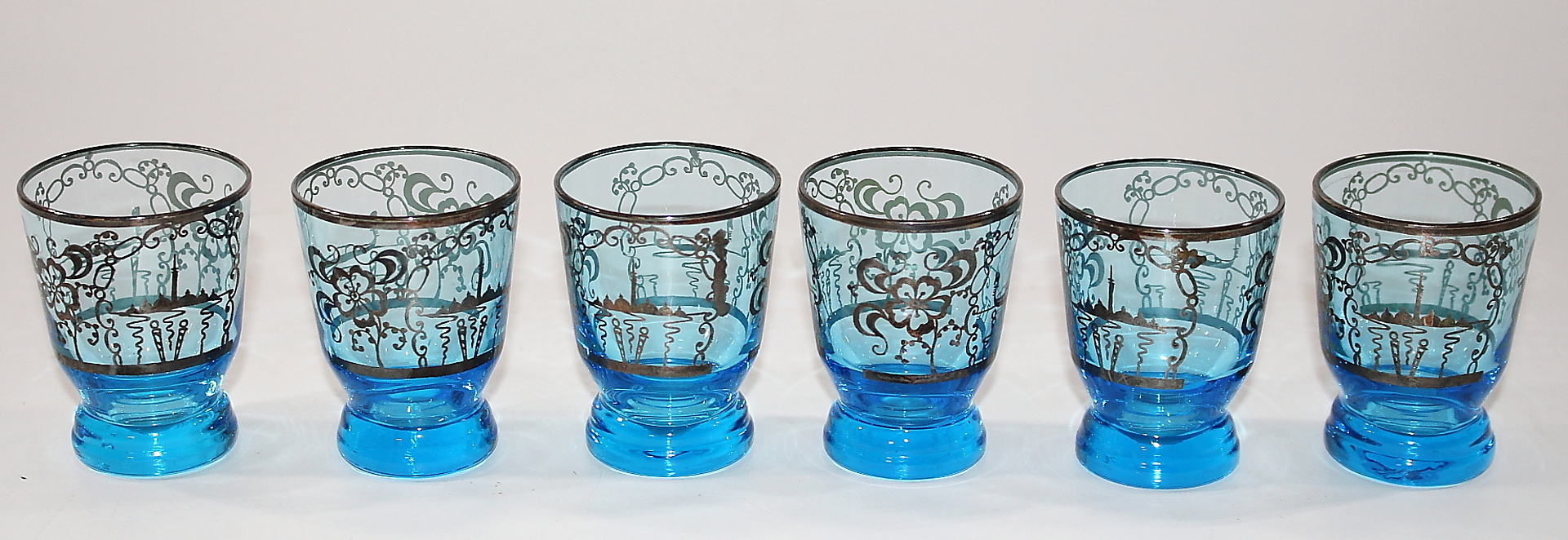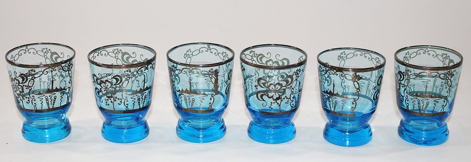 269166. KARFE og GLAS, 7 dele, med sølvdekoration "Murano".