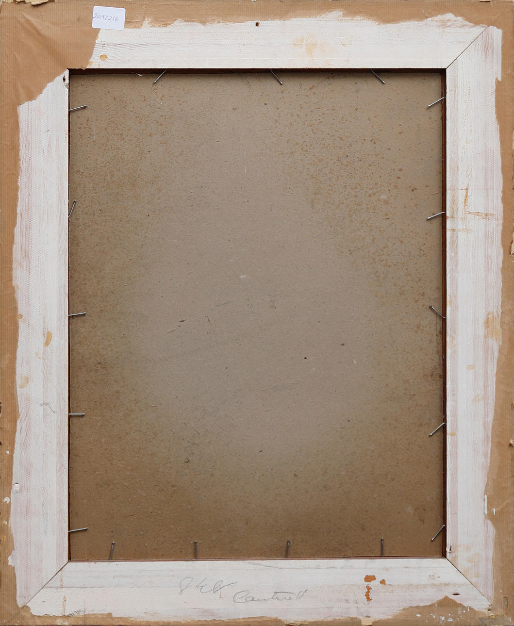 Talrige ommalinger og restaureringer. Tab af billedlaget. Stuk og forgyldt træramme.