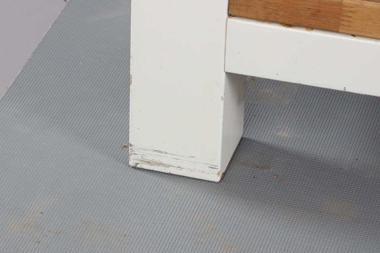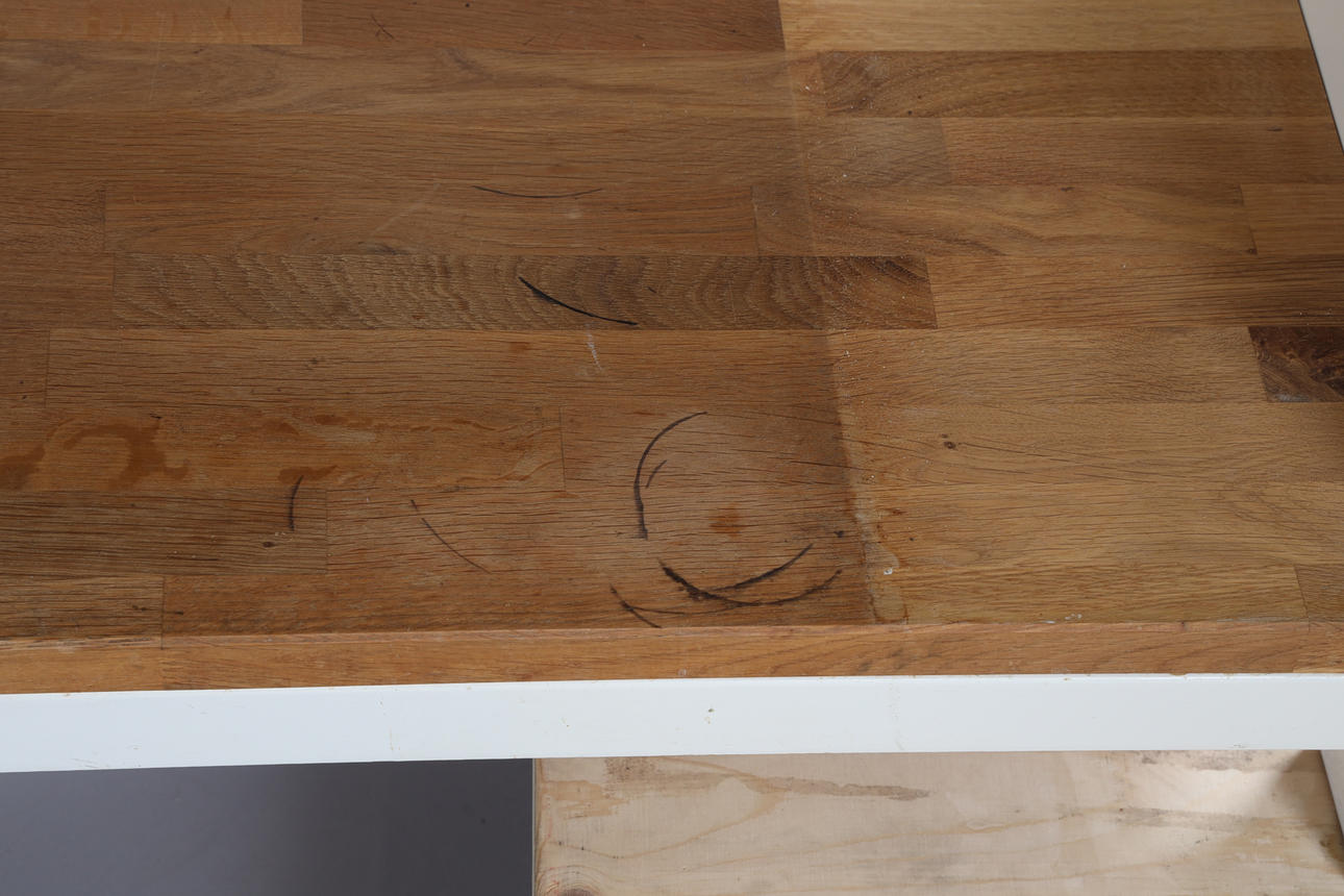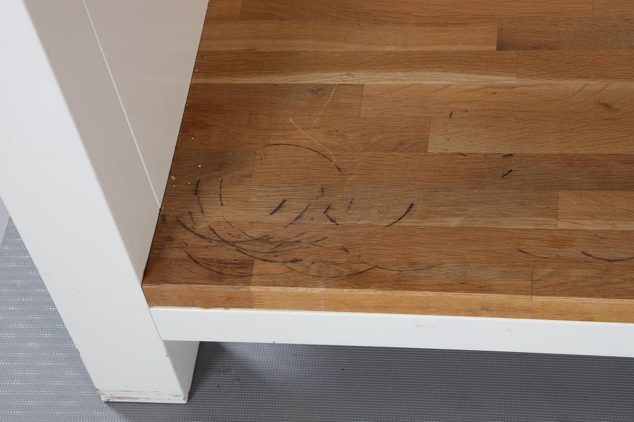 hvidmalet med stiftlimet træ, højde ca 91, 150x80 cm.