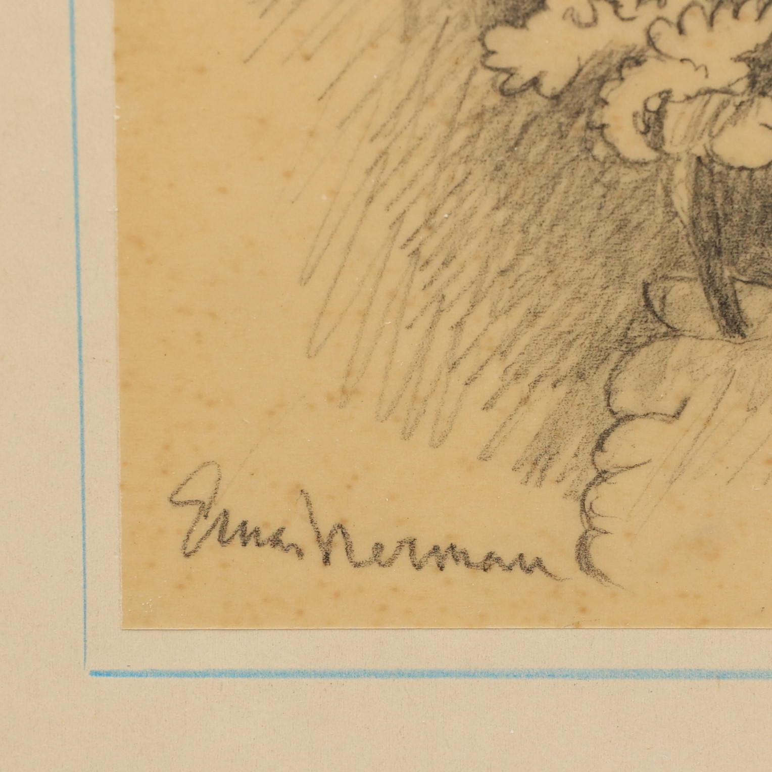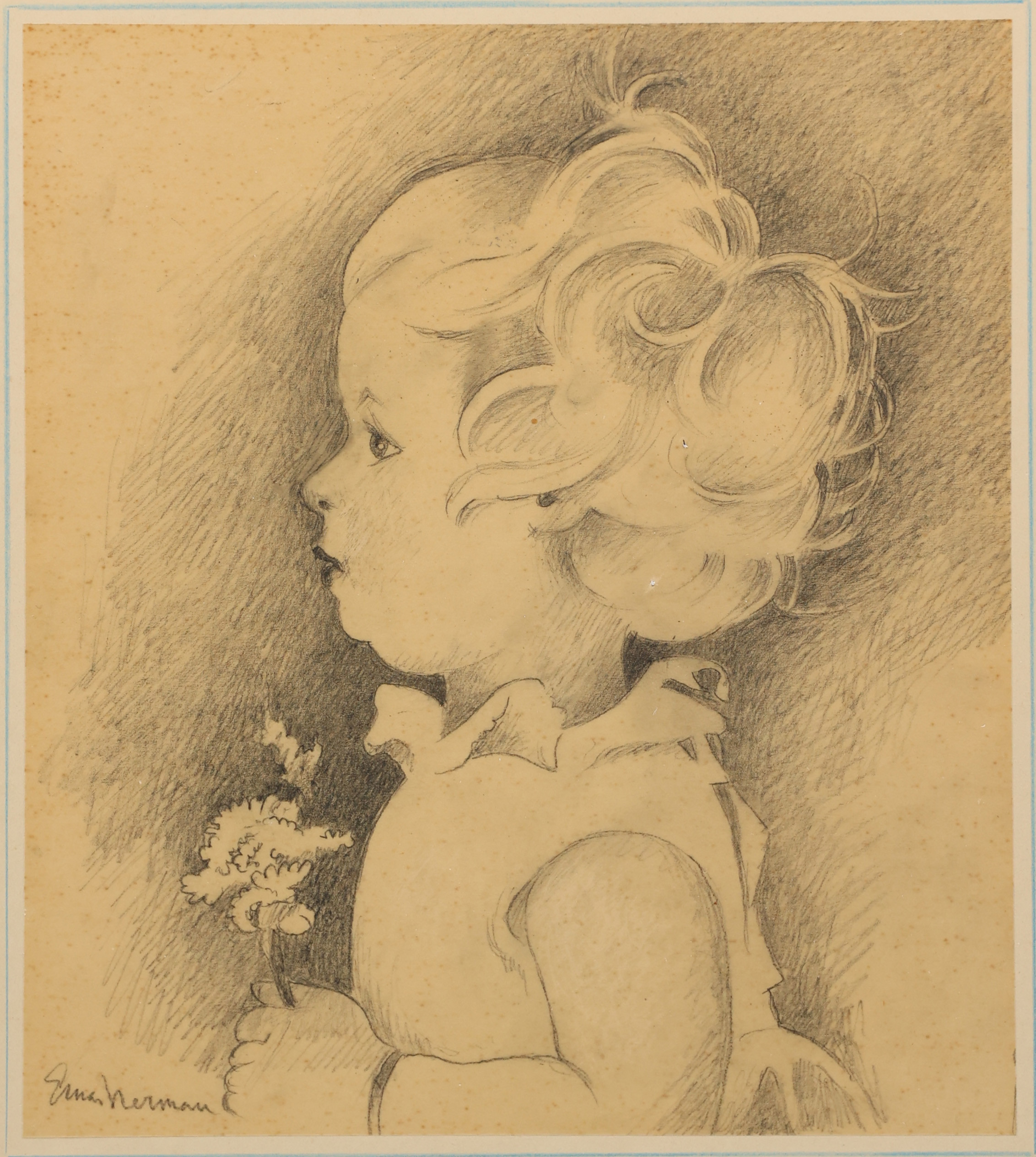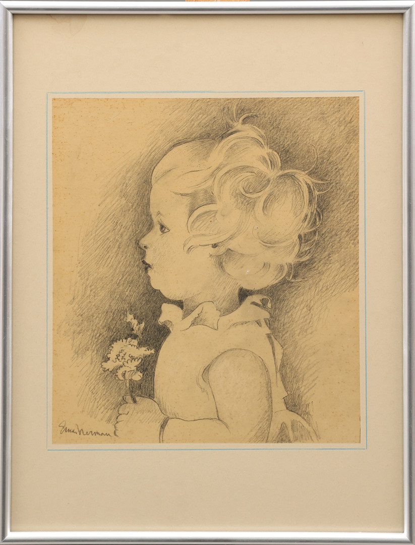2699015. EINAR NERMAN. Pige med blomst, tegning, signeret.