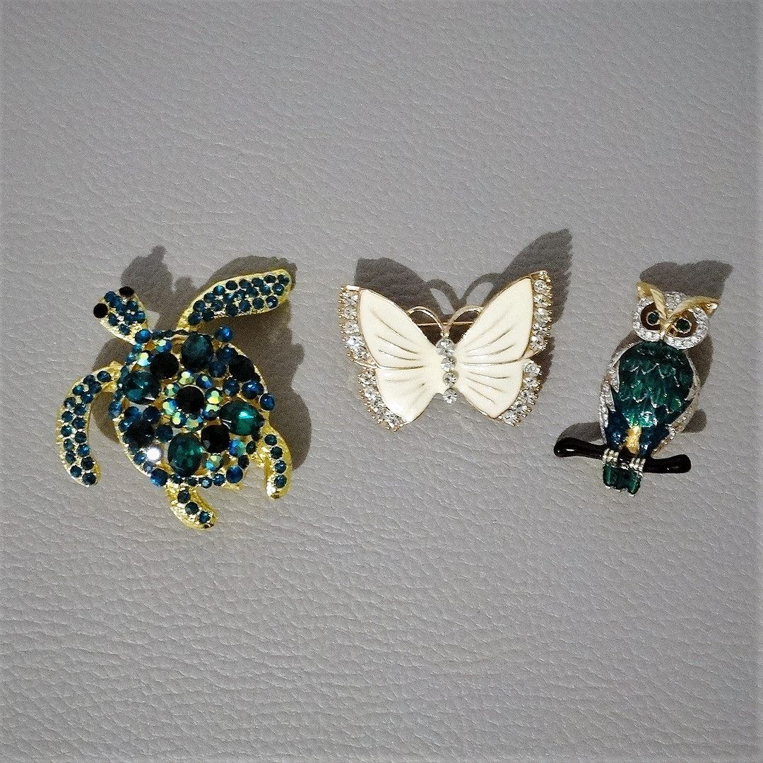 2700158. TRE SMYKKEBROCHER, med dyremotiv.