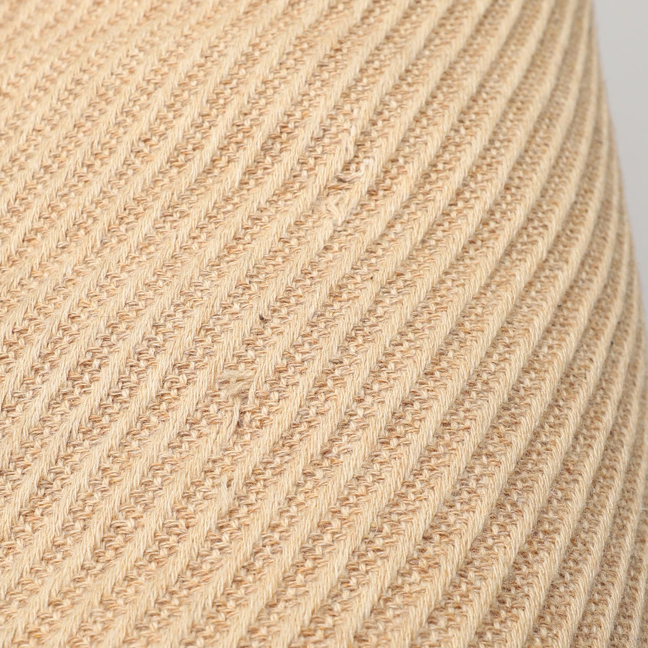Tre-personers med løse polstrede hynder. Fold bagside og sider. Klædt i beige præget stribet stof. Længde 240, sædehøjde ca 38 cm.