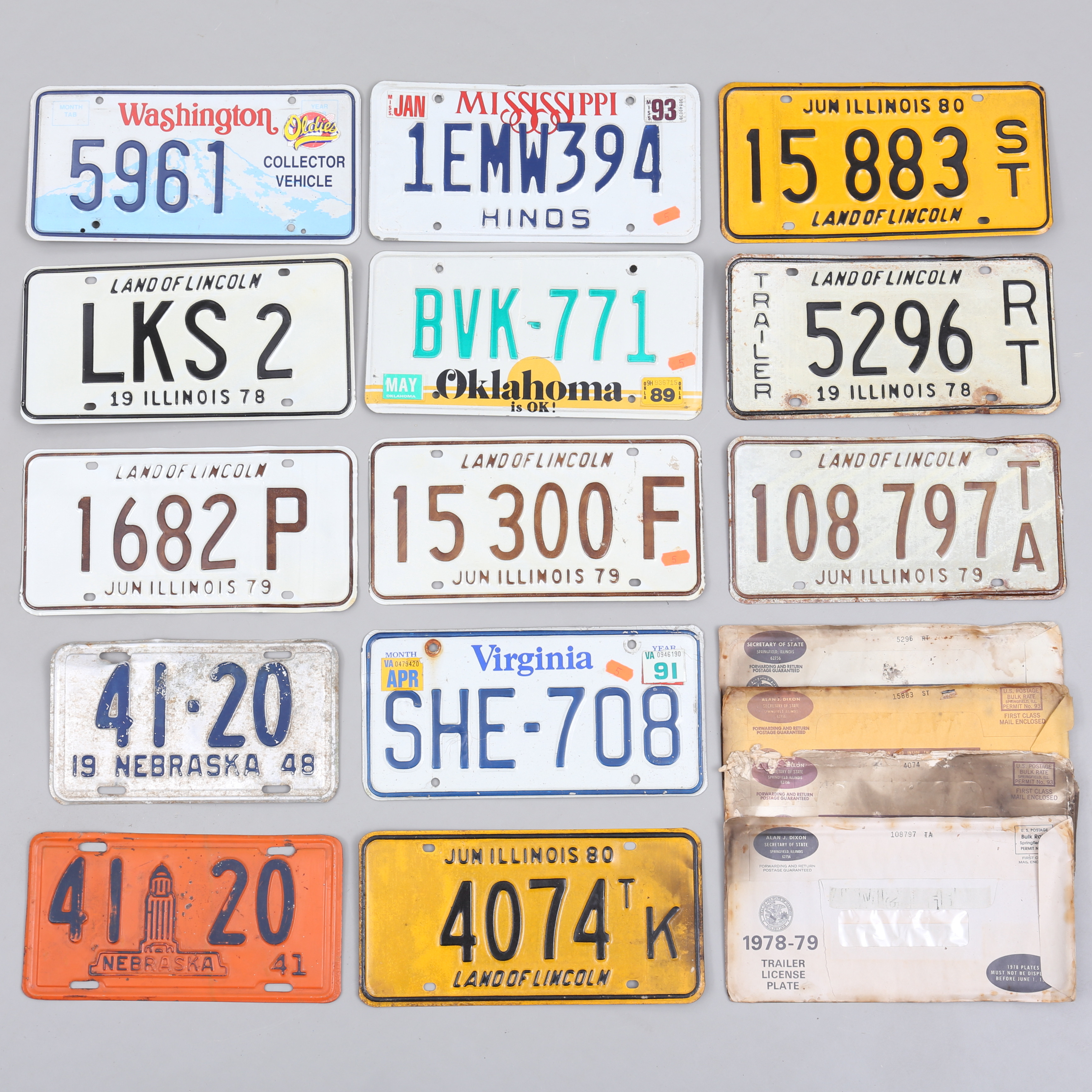 2705018. REGISTRERINGSPLADER, 13 stk., USA, 1900-tallet.