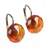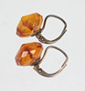 antikke rav øreringe lavet af sølv, de hængslede ørekroge bærer rund facetteret rav, længde på øreringe 18 mm, diameter 11 mm, vægt 2 gram.