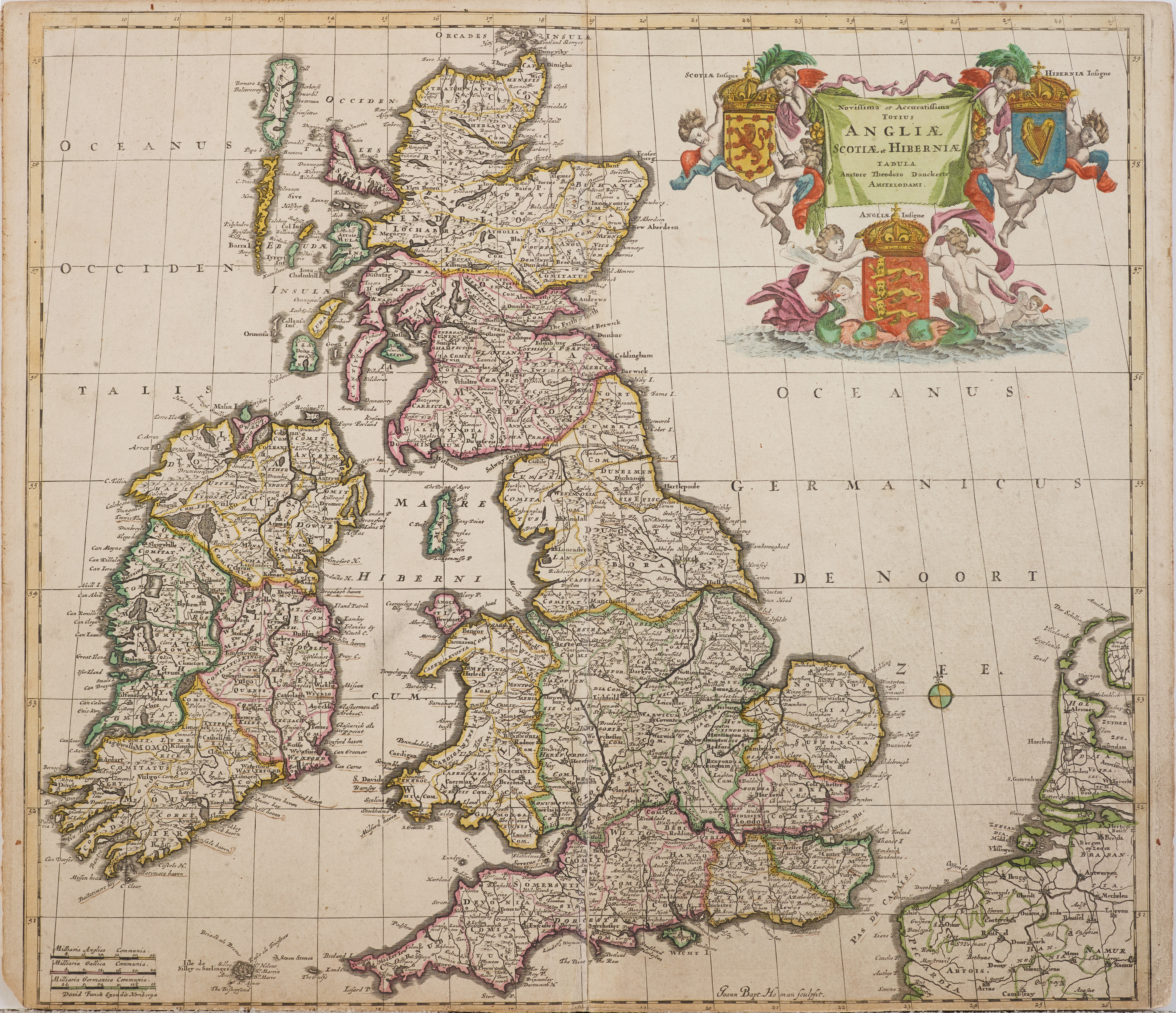 2706149. KORT OVER STORBRITANNIEN AF DANKERTS, omkring 1690.