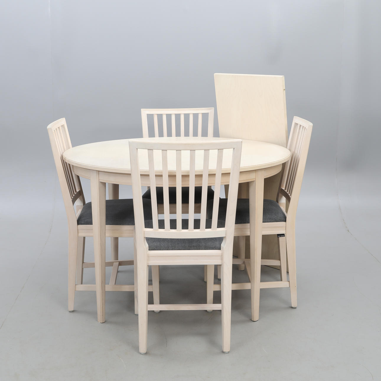 Bord Højde ca 74 cm Diameter ca 110 cm Stol Højde ca 88 cm Bredde ca 45 cm Dybde ca 45 cm Siddehøjde ca 46 cm Indsatsplade ca 48 cm.