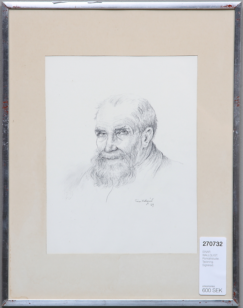 270732. EINAR WALLQUIST. Portrætstudie. Tegning. Underskrevet.