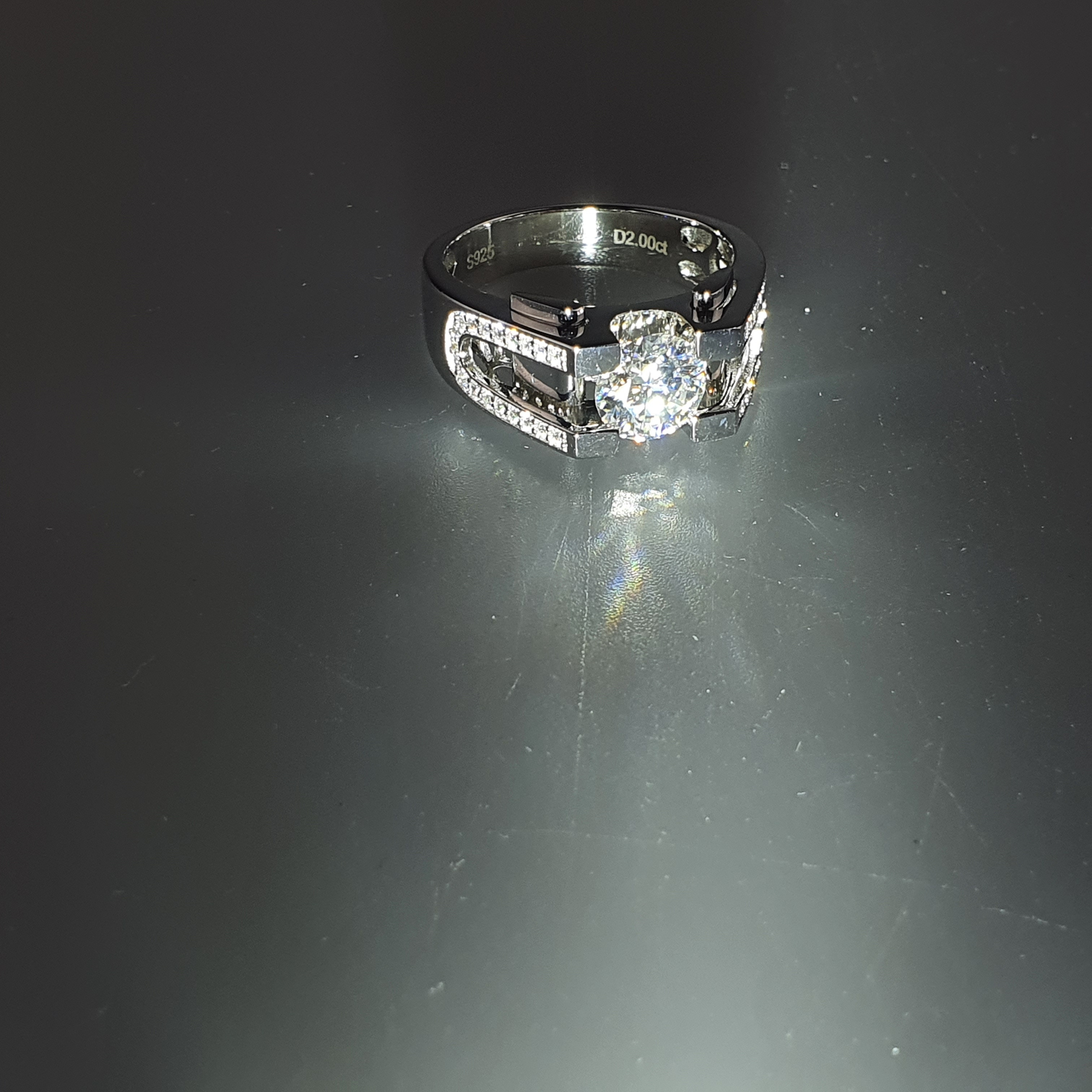 2707771. Moissanite mænds ring - sølv 925, 2,00 ct.
