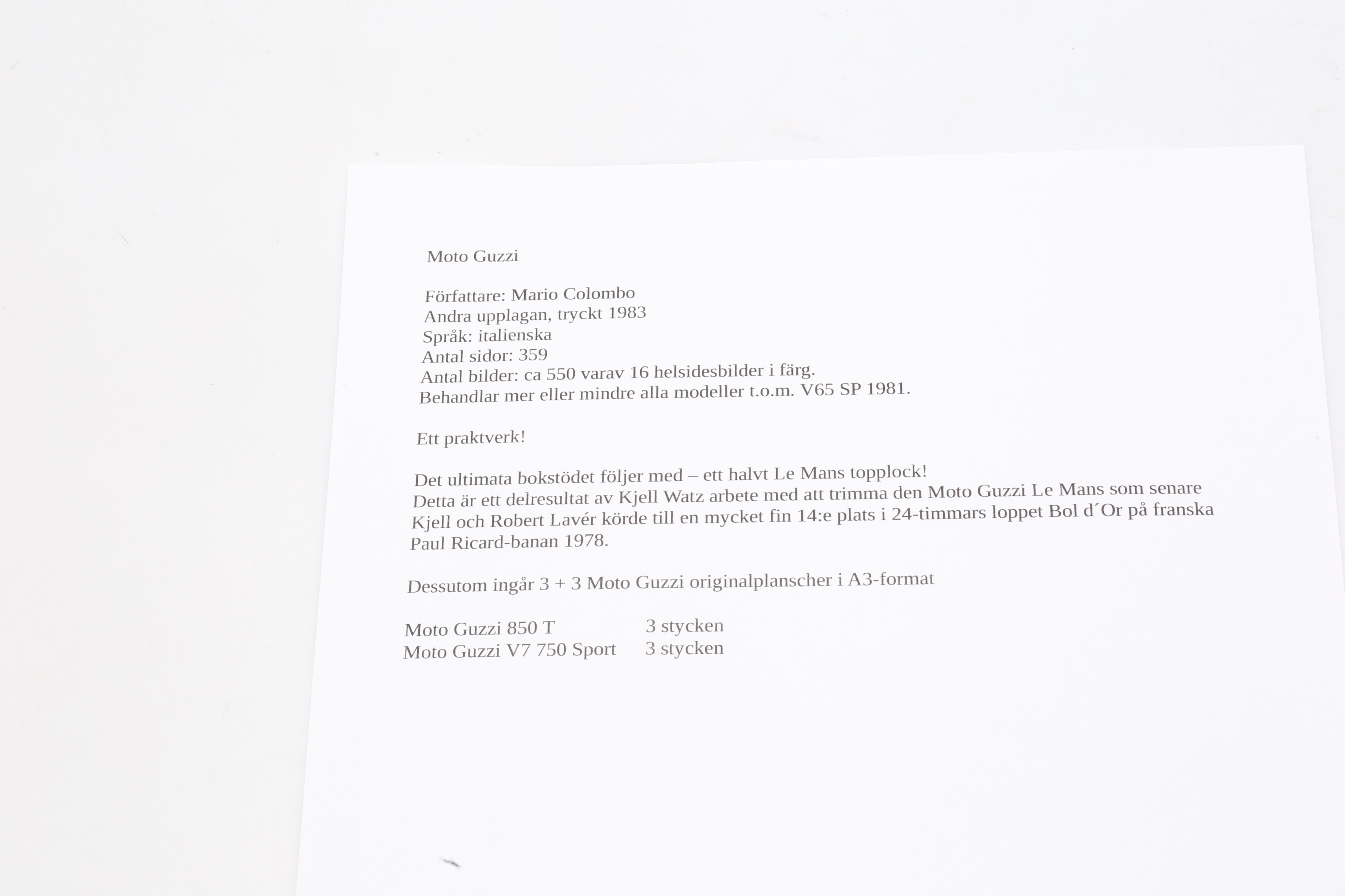 2709172. BOG og PLAKATER, Moto Guzzi og BOGSUPPORT.
