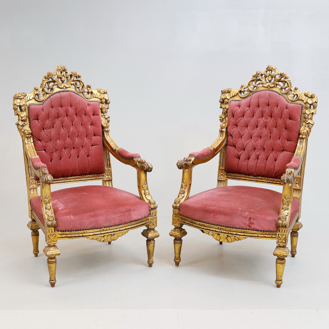 2710922. LÆNESTOLE, 1 par, barokstil, 1900-tallet.