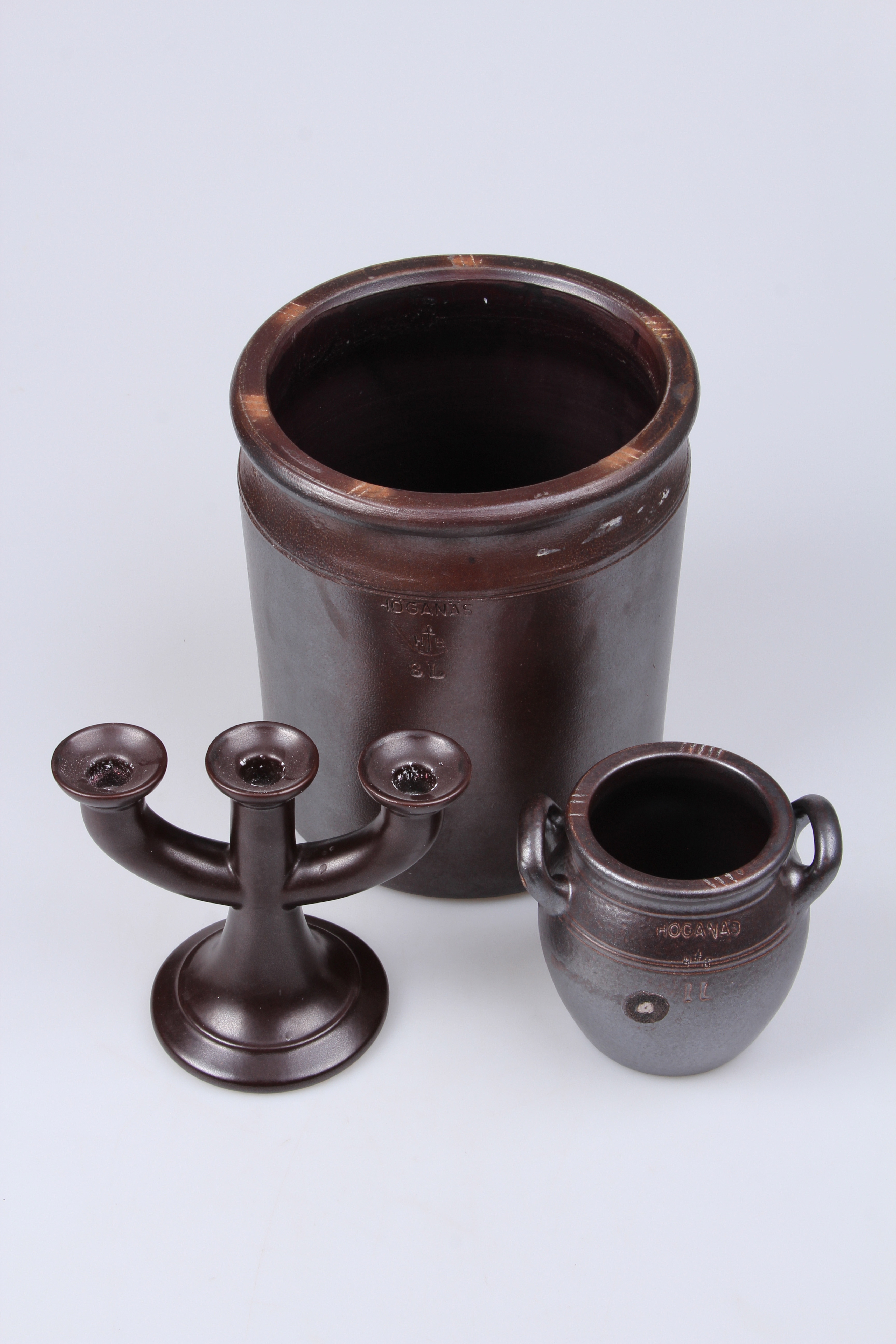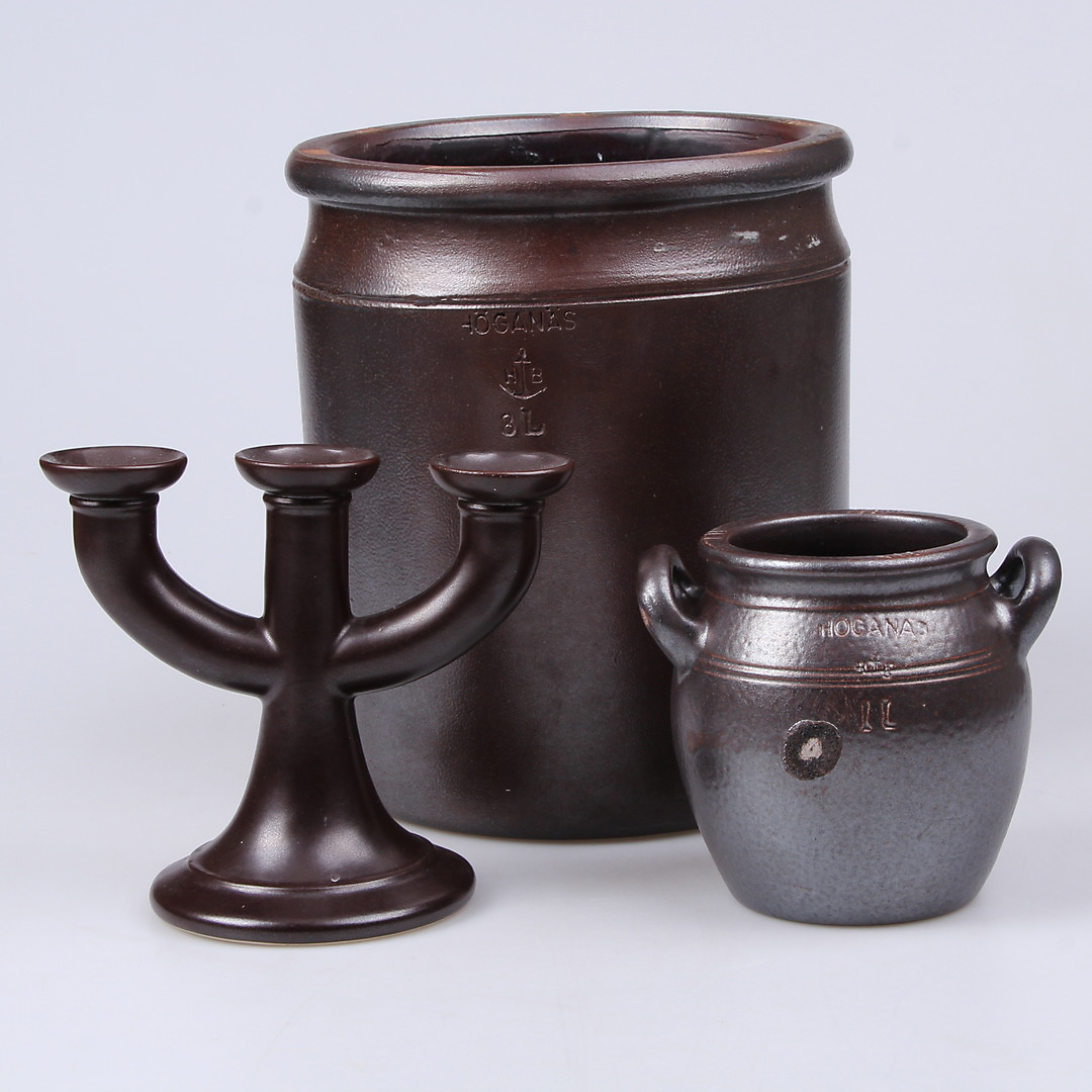 271161. KRUS, og lysestage, 3 dele, Höganäs.