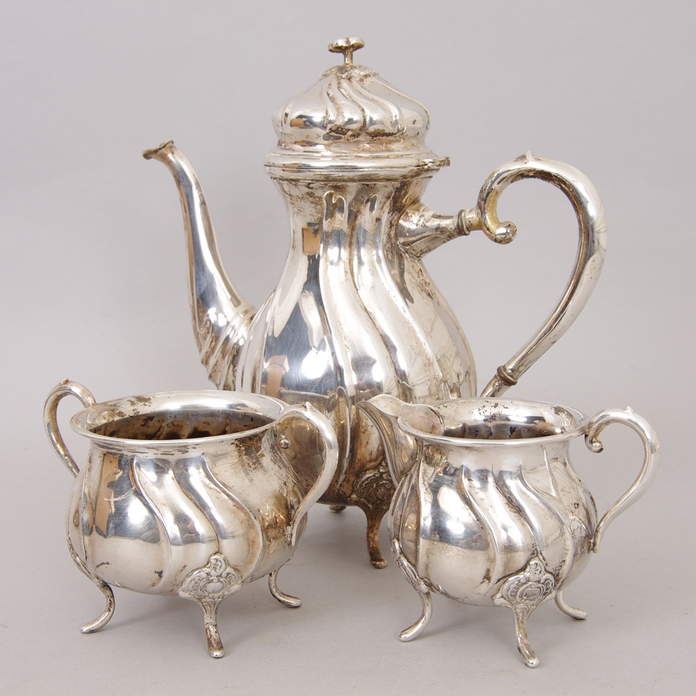 271730. KAFFESERVICE, 3 dele, sølv, rokoko stil.