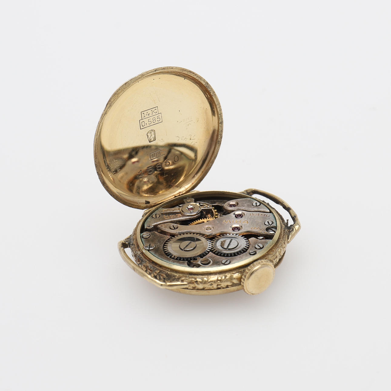 Serienummer: 15860. Urskive med diameter 19 mm. Samlet vægt 9,5 gram.