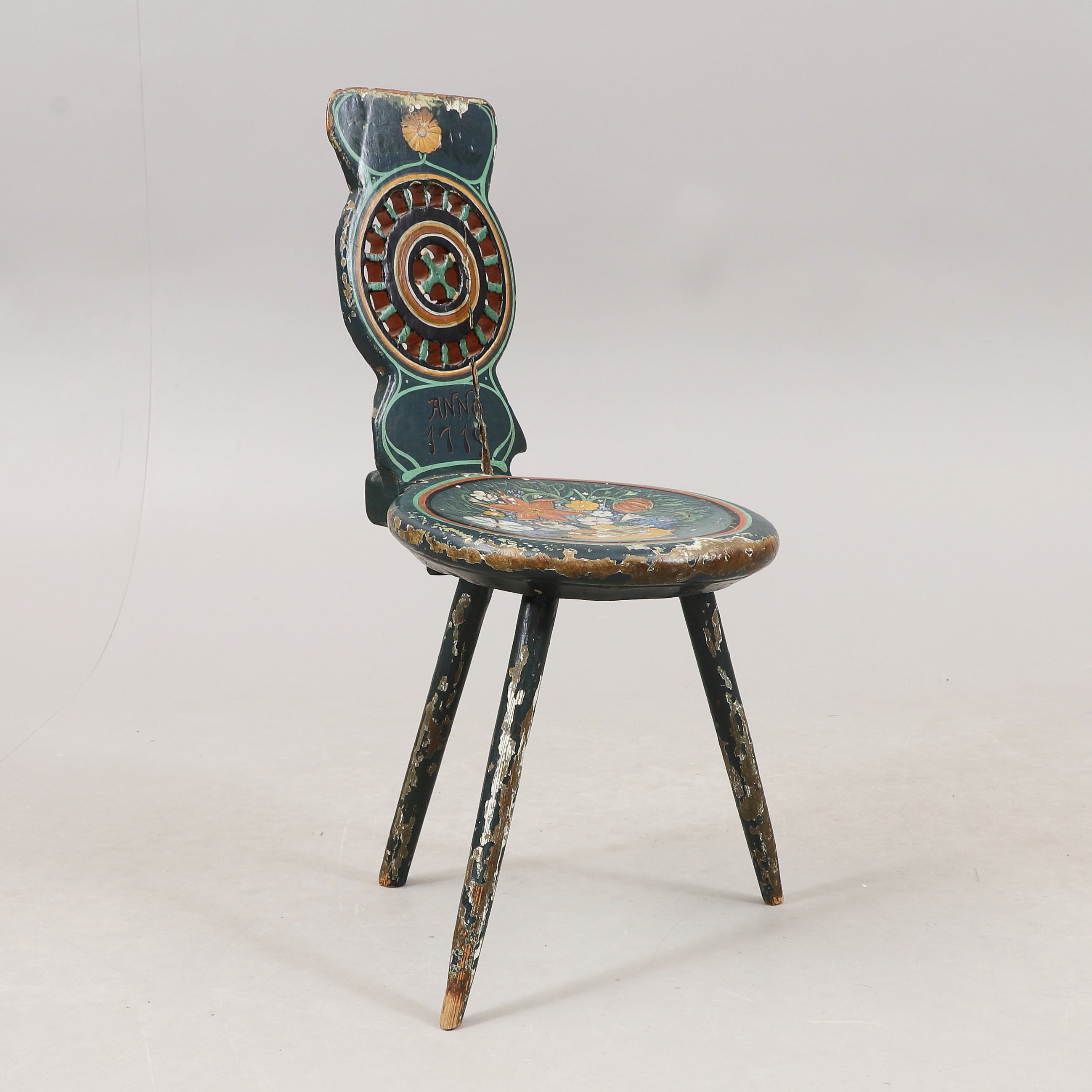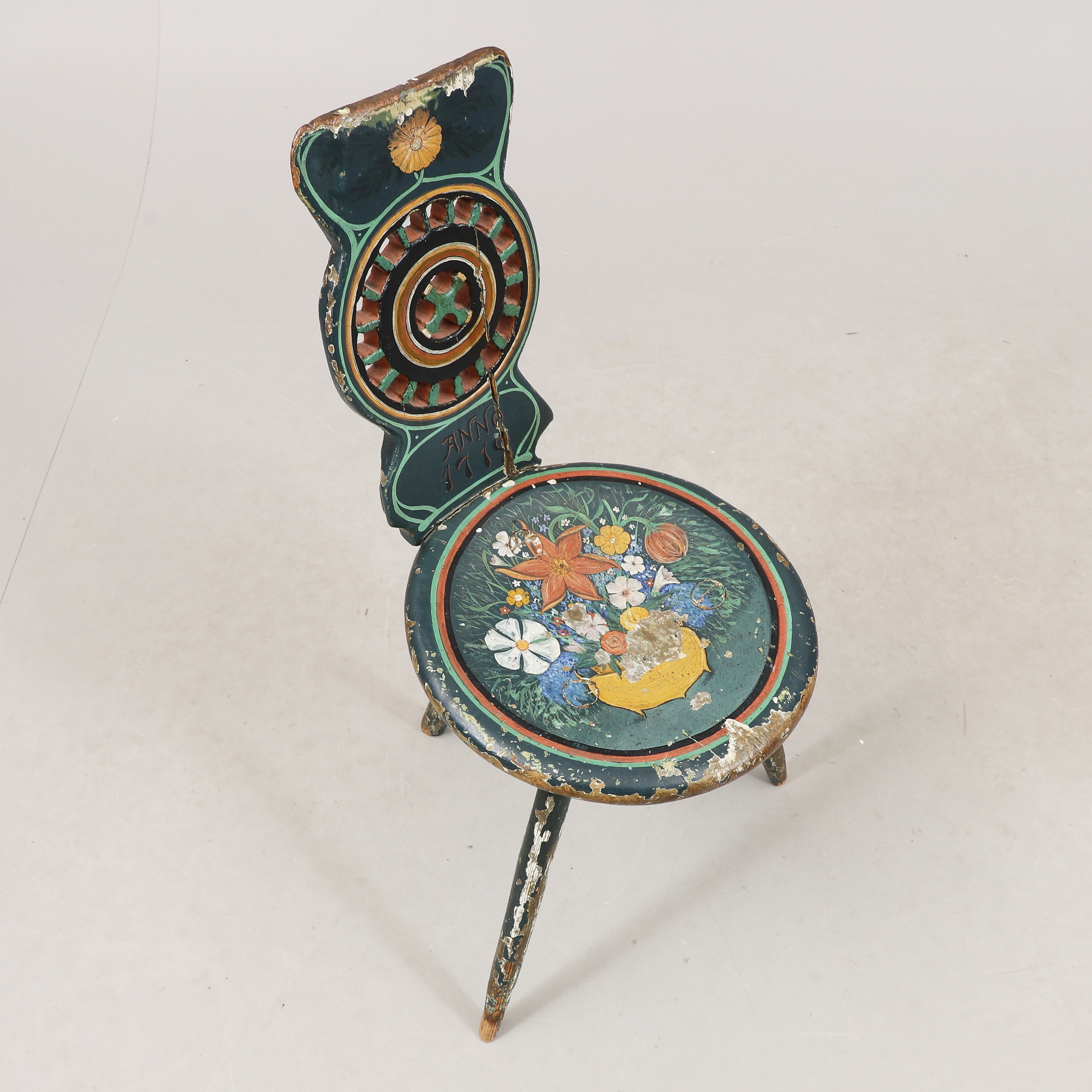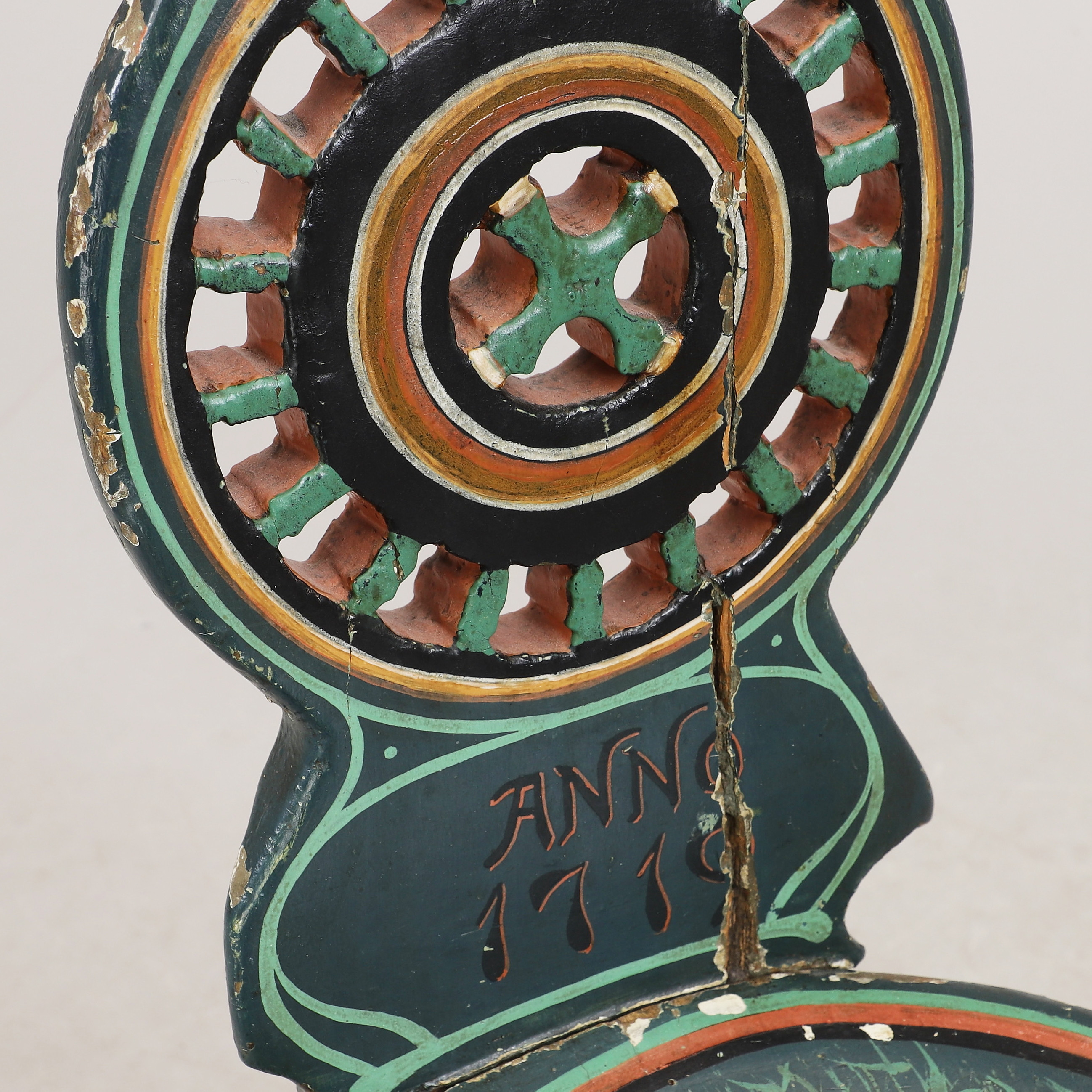 2718317. STOL, trebenet, malet, almue, mærket 1719.