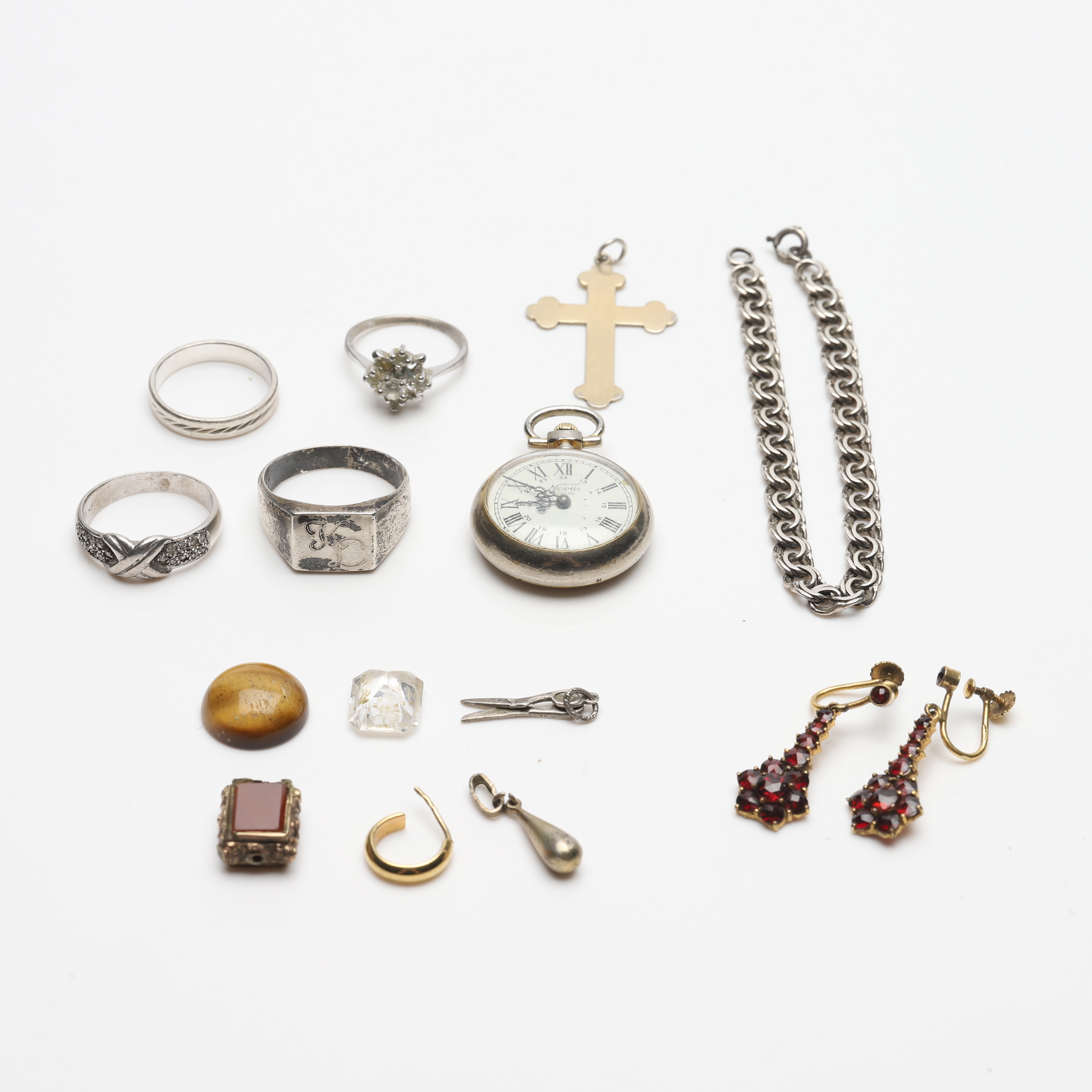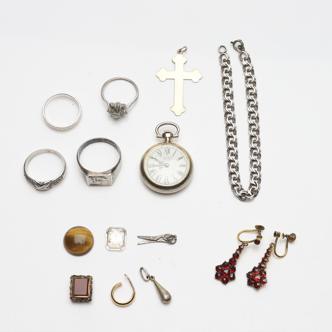 2720405. SMYKKER, 15 styk, overvejende sølv.