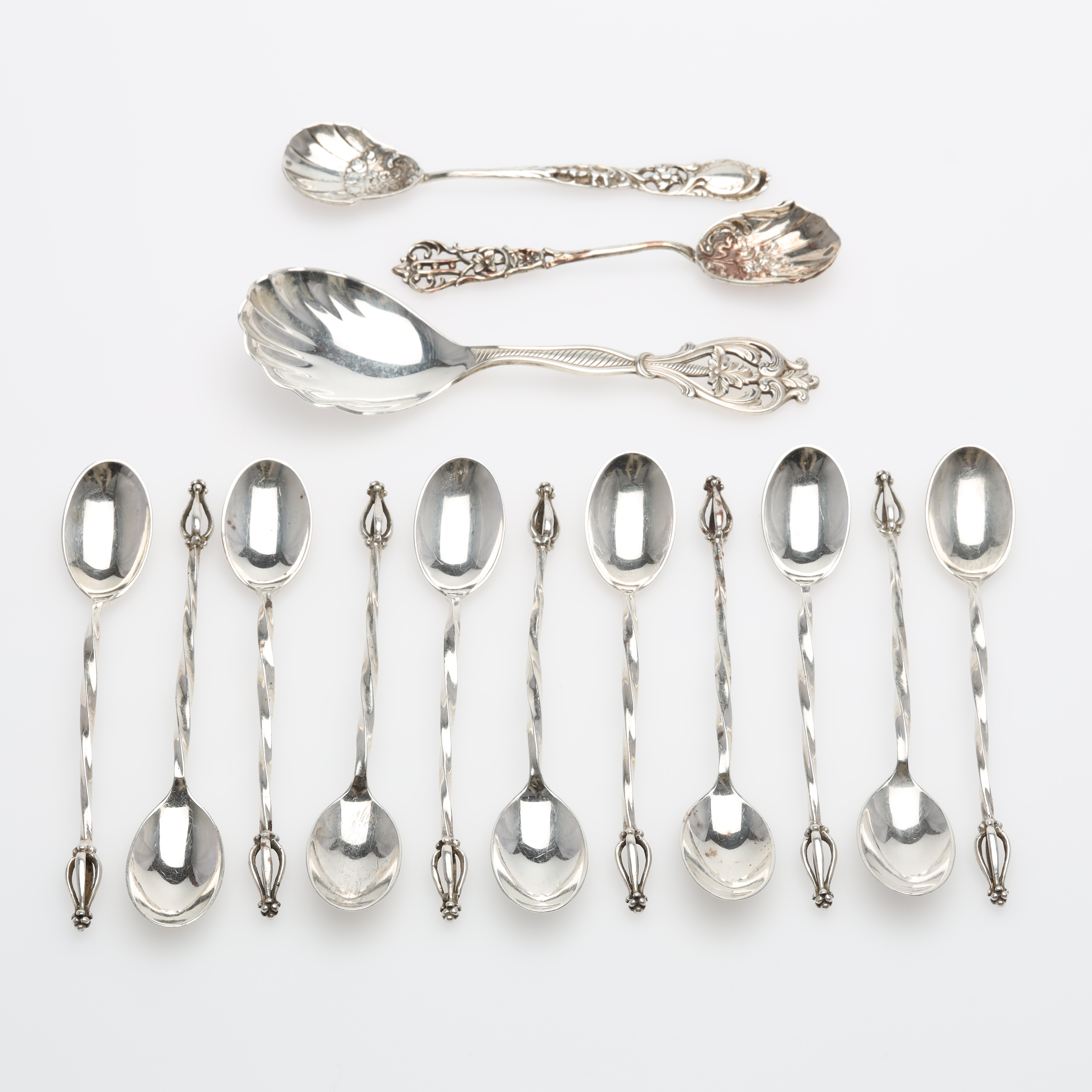 2721577. Kaffeskeer og serveringsskeer, 14 stk., sølv.