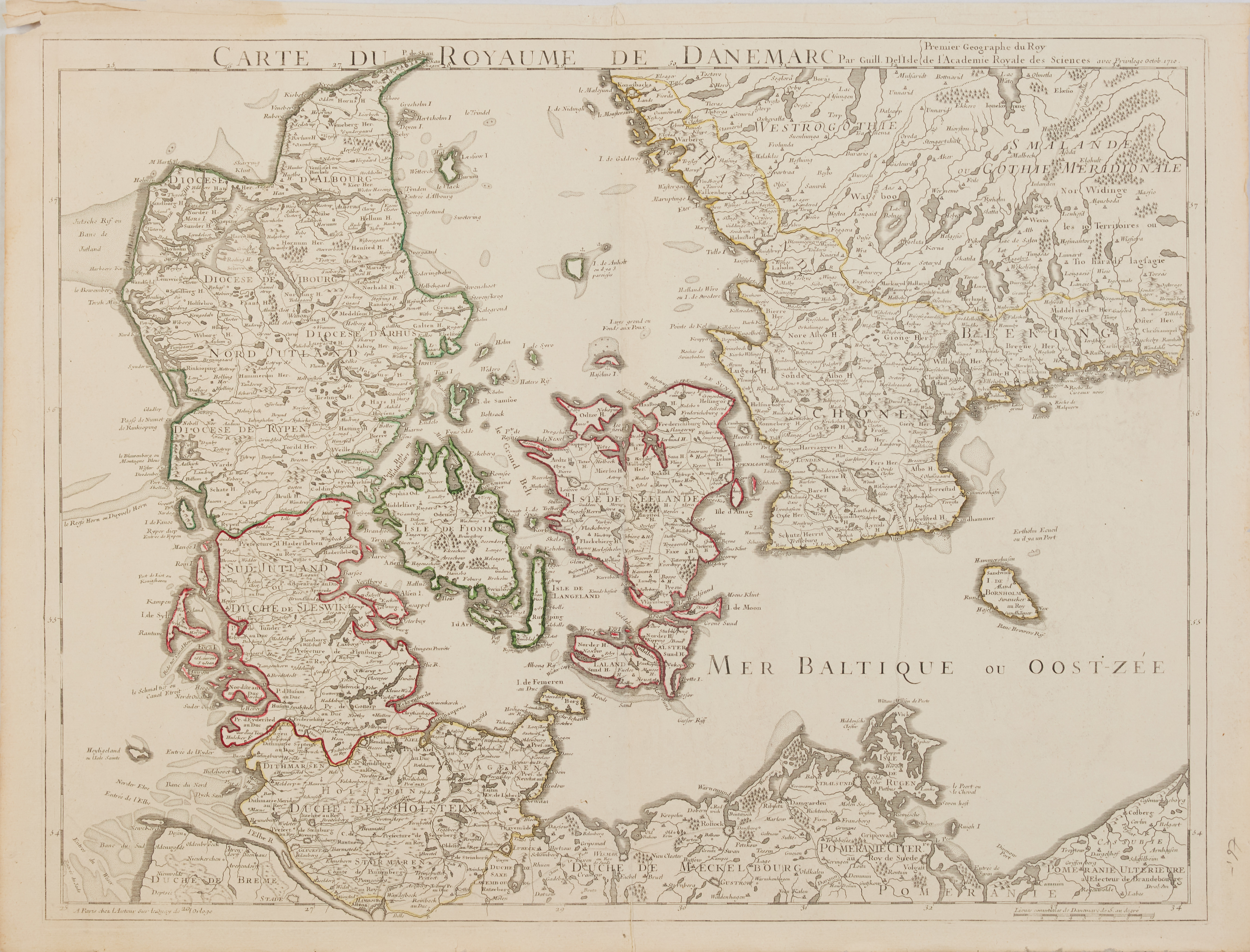 2724267. DANMARKSKORT VED DELISLE, c. 1710.