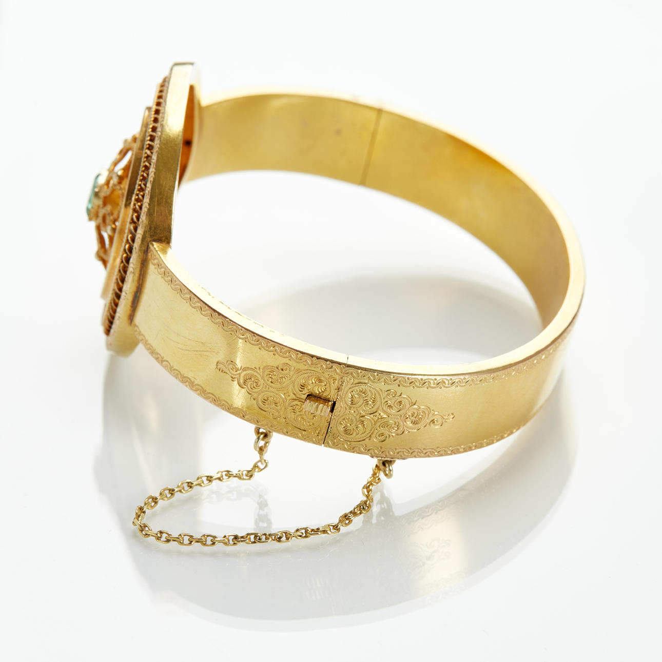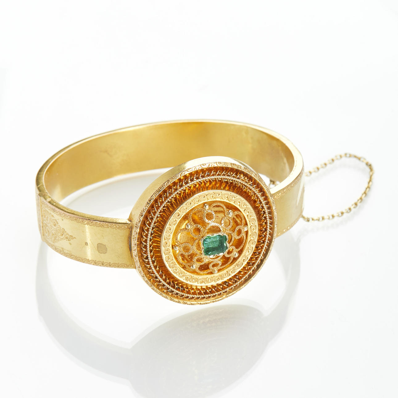 ARMBÅND, guld 18k med cabochonsleben smaragd.