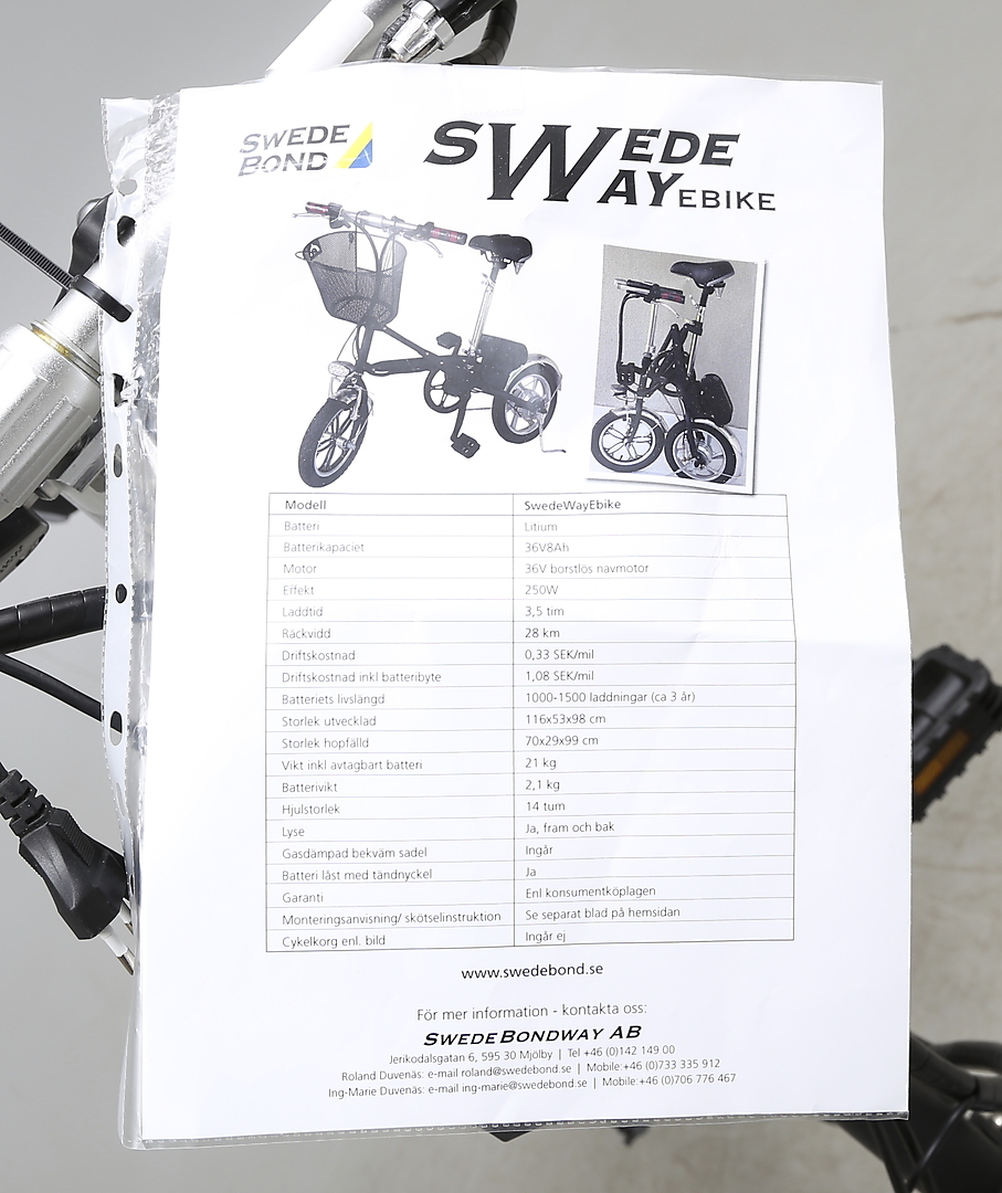 272534. EL-CYKEL, SwedeWayBike, CayRoebike, sammenklappelig.
