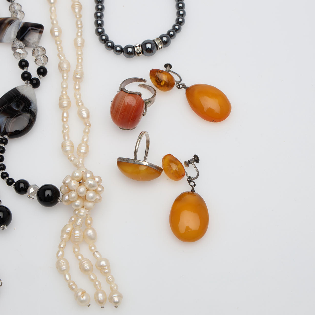 2725576. SMYKKER, 10 styk, sten, perler, nogle stykker sølv.