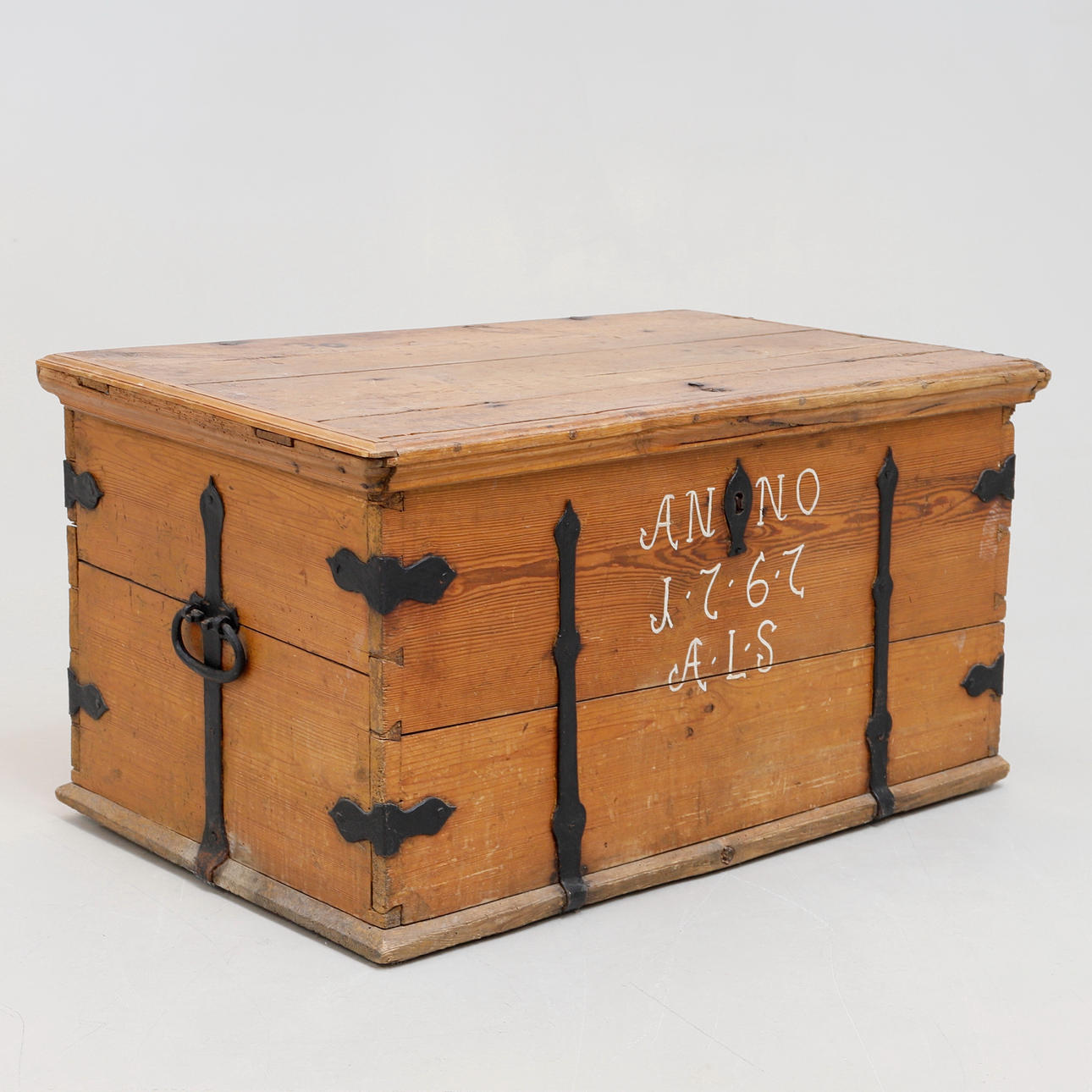 Smedejernsbeslag. Malet "Anno 1767 ALS" foran. Længde ca 97 cm. Bredde ca 59 cm. Højde ca 50 cm.
