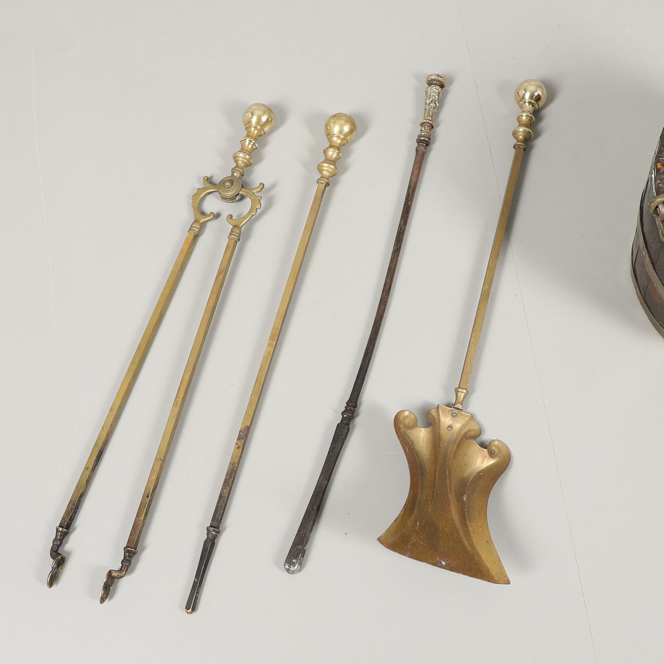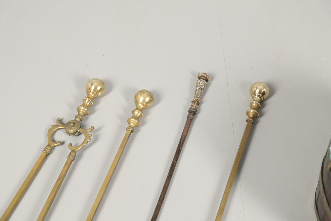 begyndelsen af det 19. århundrede, sammen med ildjern af messing inklusive tang og poker (33,5 cm i diameter, 24,5 cm høj). (5).