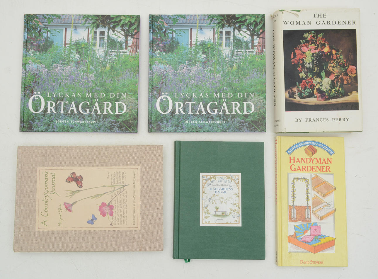 Handyman gardener / David Stevens, 1982 Trädgårdens dagar / Iann Eklund Tinbäck, 1998 The woman gardener / Frances Perry, 1955 Havenoter / Richard Gorer, 1984 A country woman's journal / Margaret Shaw, 2002 Gardeners' calendar, 1987 Bo6 Christensonträdgården 19 Havetips for hele året / LE Samuelsson, 1997 Succes med din urtehave / Jörgen Schwartzkopf, 2002 Succes med din urtehave / Jörgen Schwartzkopf, 2002 Latmansträdgården / Kerstin Engstrand, 2003 Latmansträdgården / Kerstin Engstrand flower, 20003 / Erik Garden flower, 2003.