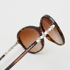 Solbriller med dekoration af rhinsten og perler. Buebredde ca 13,5 cm. Etui, taske og renseklud medfølger.