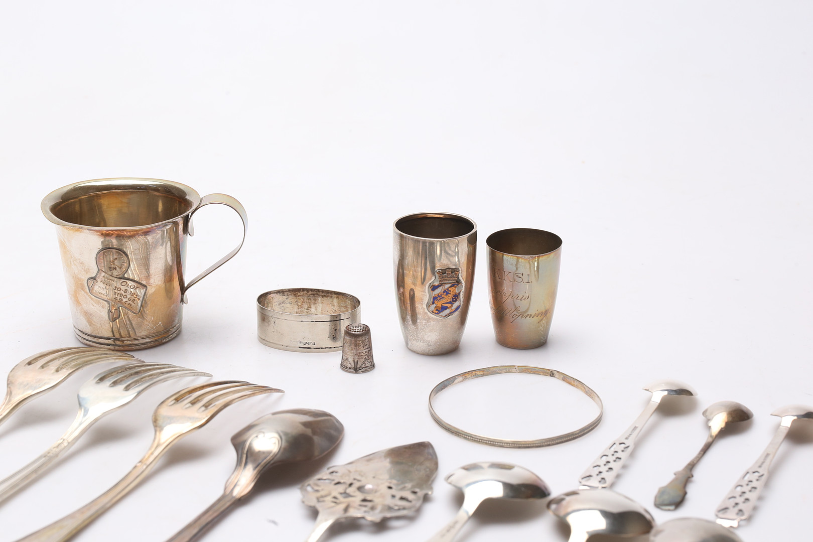 2737762. SØLVGENSTANDE, vægt ca. 684,3 gram.